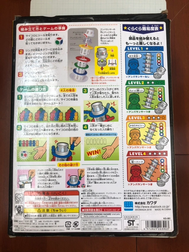 あたたかさ元祖ぐらぐらゲーム 株カワダ 対象年齢6歳以上 プレイ人数2〜4人 赤い人形1人足りません 青い人形1人足りません アンバランスボールありません 欠品あっても遊べます 他は揃ってます タワーヒビ、欠け無いです 専用箱有り