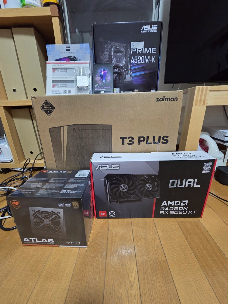 *2枚目はVGA以外同じ構成で組み立てたものです。完成したらこんな風になると参考してください。 *どうせいいねだけ押して買う気もないの分かってますので余計にいいね押さないでください。 *必ず本文をお読みの上お問い合わせください。 *パーツ開封後購入されない場合、その減価償却被害の保険として 現場で新品パーツ確認⇒代金お支払い⇒組み立て⇒起動テスト の順番で販売しております。 その分現場で組み立て過程、動作テストまでご自身で確認できるため、購入者様と販売者両方ともリスク対策は取れています。今までこういった取引方式でクレーム0でした。このような取引方式でも納得/理解できない方々は私にメールせずメーカーのBTO製品をご購入ください。 *値下げ/取り置き等の要求・非常識的なお問い合わせ➡答えずに即ブロック* すぐお越し頂く場合1000円程度は値引き可能 *日本語理解できない方には返信せずブロックしております。 *事情の説明なく2時間以内返信ない方は全部ブロックしてます。 *仕事中でしたら仕事終わってから即やり取りできる際にご連絡ください。 すぐお越し頂ける日にご連絡ください。 (平日・祝日午後8時~終電 土日随時) CPU : Ryzen5 5600 *新品未開封 + Thermalright Assassin X 120 Refined SE V2 クーラー M/B : ASUS A520M-K *新品未開封 1年保証・納品書付き RAM : Jazer DDR4 16g 3200mhz * 2 *新品 納品書付き SSD : SK Hynix P41 1tb *新品未開封 5年保証・納品書付き VGA : ASUS DUAL 9060xt 8g *新品未開封1年保証納品書付き PSU : Cougar ATLAS 750w *新品未開封 3年保証・納品書付き CASE :Zalman T3 plus *新品未開封 1年保証・納品書付き Windows 10 Pro ライセンスキー (M/B帰属・Win11無料アップグレード可・フォーマット可)込み 必須ドライバー・設定等基本的に行います。 全部新品であるため、私の部屋でパーツ確認、代金支払い頂いてから組立~設定~FF14ベンチマーク実技テスト後出荷致します。 (所要時間約1時間前後)