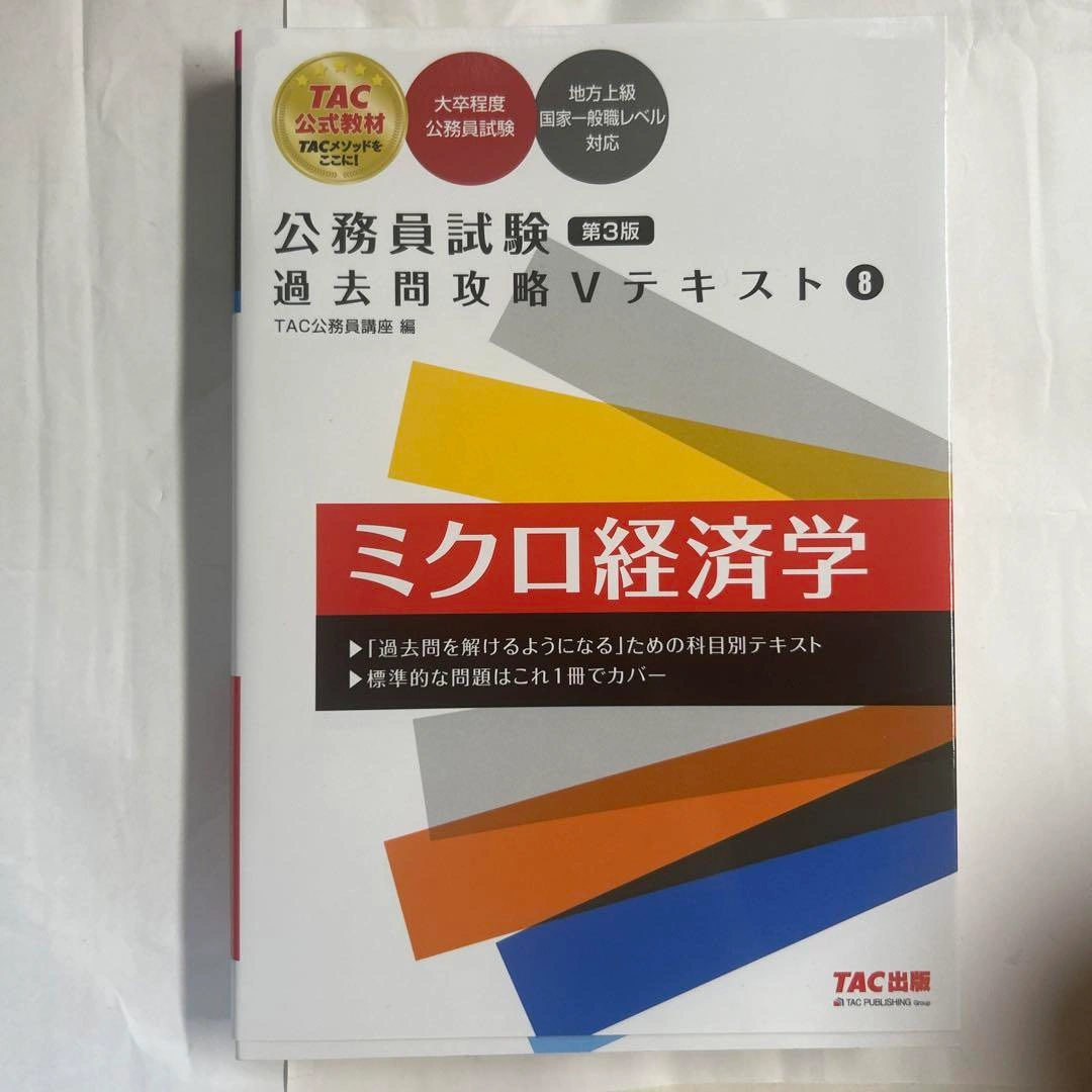 「公務員試験 過去問攻略Ⅴテキスト 8 ミクロ経済学 第3版」 TAC株式会社(公務員講座) 定価: ¥2500 ご希望の方はお気軽にご連絡ください。