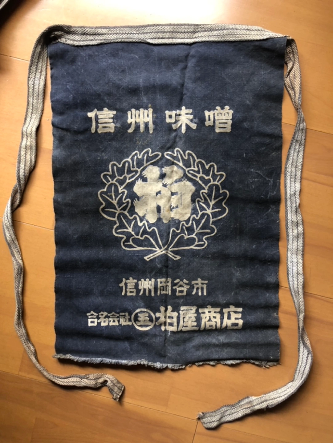 あたたかさ前掛け 信州岡谷市 柏屋商店 リバーシブル 表、裏両面撮影(写真1・2枚目) 縦67センチ 横幅43.5センチ 紐の長さ92センチ ペンで指してる所ほつれ有ります 実家の片付けで出てきました 宜しくお願います 自宅3階