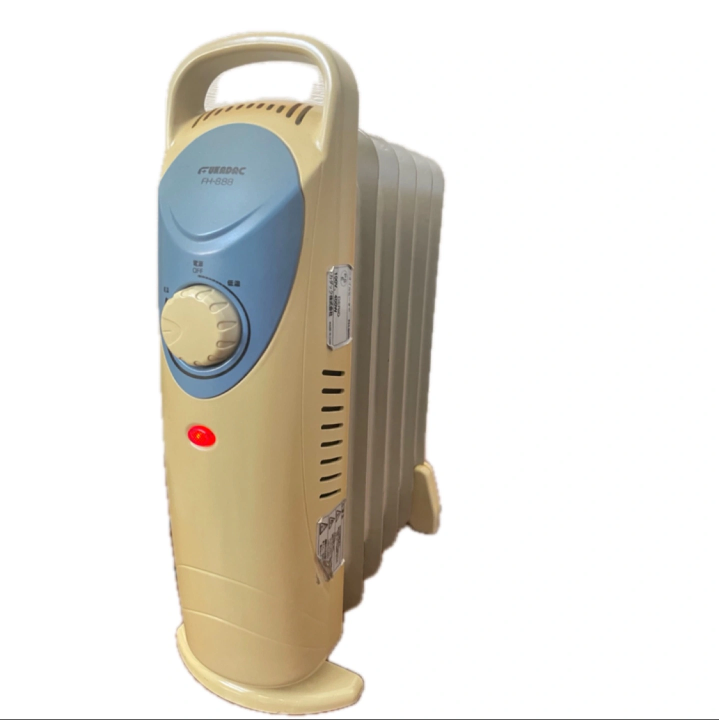 クリーム色のオイルヒーター FH-888、赤色の電源ランプと操作ダイヤル付き。 - モデル名: FH-888 - 色: クリーム色 - 電源ランプ: 赤色 - 操作ダイヤル: あり - ハンドル: あり 動作異常なし。 15分-20程度で暖かくなります。 写真の通り古いもので前側に黄ばみ、横のパネルに傷汚れありますが、動作に問題なく動きますので、まだ寒い2月-3月の夜にご使用くださいませ。 オイル漏れ無し. #暖房 #雪 #冬 #冬場 #真冬 #冬場ストーブ #ストーブ #ヒーター #石油ストーブ # 【お渡し場所】ファミリーマート大田千鳥3丁目店前 【取引日時】金曜、日曜を除いた平日昼間〜夕方まで 監視カメラがある場所なので夜でもかまいません。 上記の条件に合わせてくださる方を優先させていただきます。(早いもの勝ちではありませんのでご了承ください)