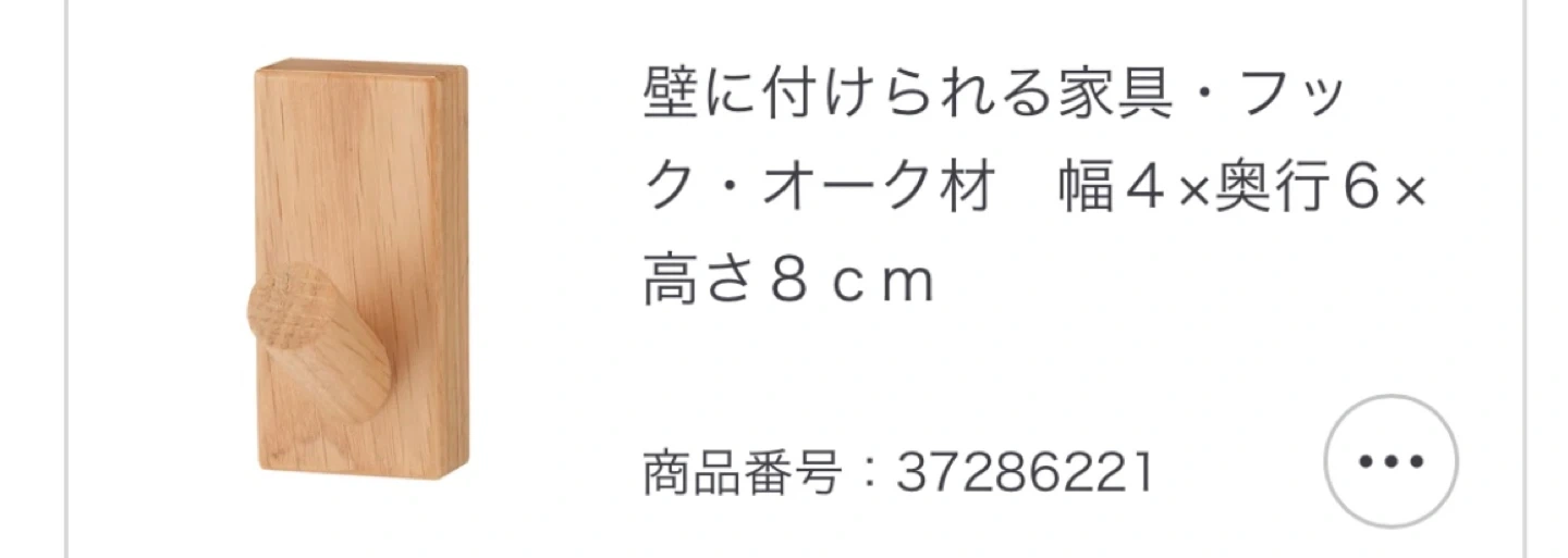壁付け家具のフックです ・素材:オーク材 ・サイズ:幅4cm x 奥行6cm x 高さ8cm ・壁に取り付け可能 中古品であることご了承ください 使用していた中古品になりますが、使用頻度少なくまだまだ使っていただけるかと思います。ご検討よろしくお願いします。 ⭐︎取引希望場所 代々木上原駅徒歩3分 上原ミート 東京都渋谷区上原2丁目47-16