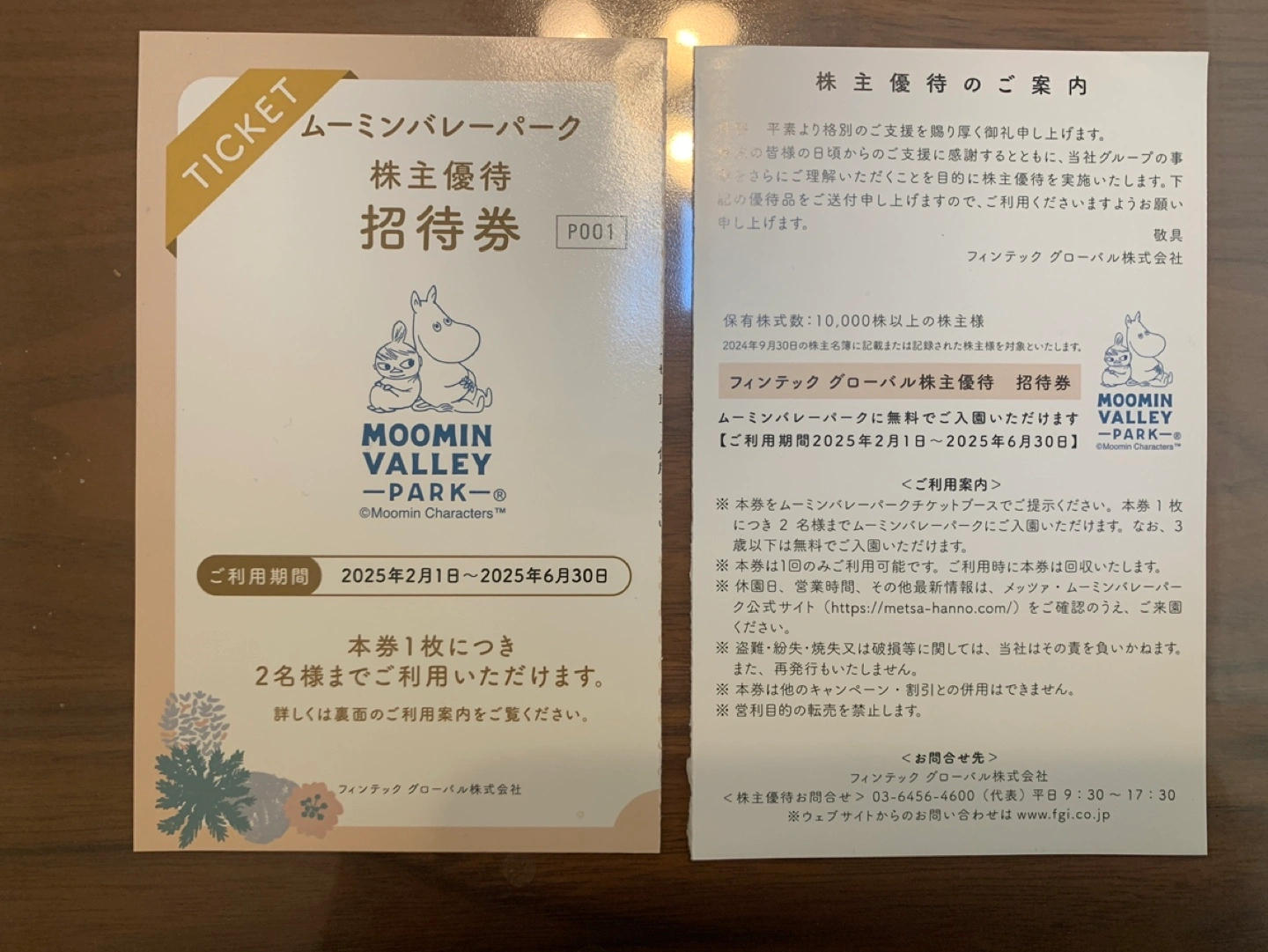 ムーミンバレーパーク株主優待券(2名入園可、3歳以下入園無料)です。 ご利用期間2025/2/1〜6/30です。 2名入園の場合、窓口購入ですと、¥8600ですので、お得だと思います! ご興味ある方は、お値段交渉、お引き渡し場所の相談には応じますので、ご検討くださいませ! ご購入後のキャンセ ル、返金、返品はお受けできませんのでご理解の上、ご購入ください。 宜しくお願いいたします(^ ^)