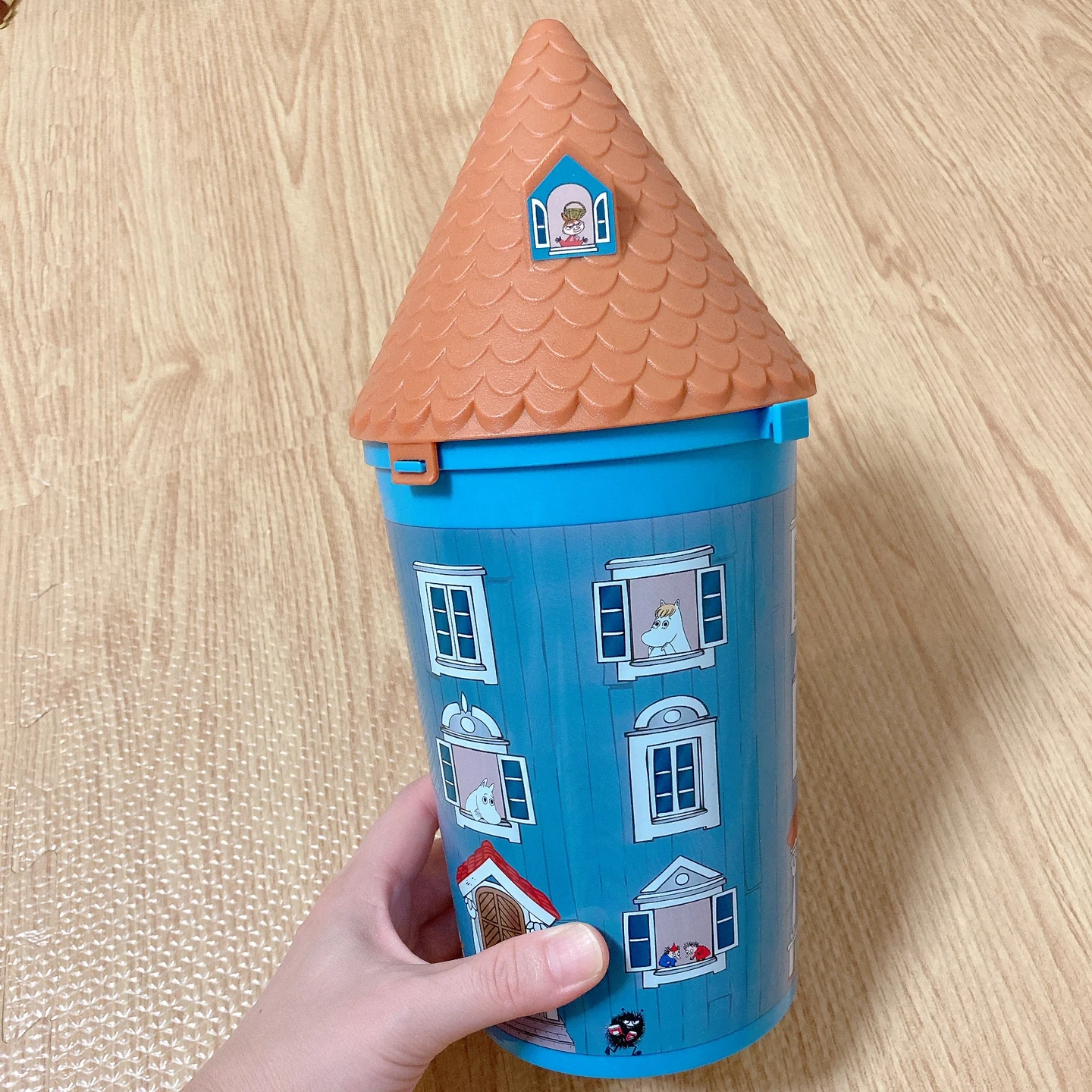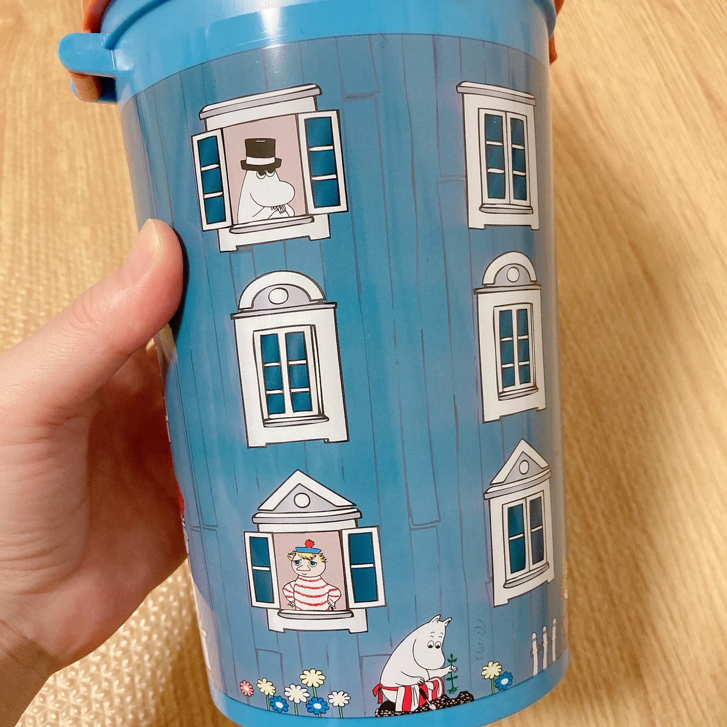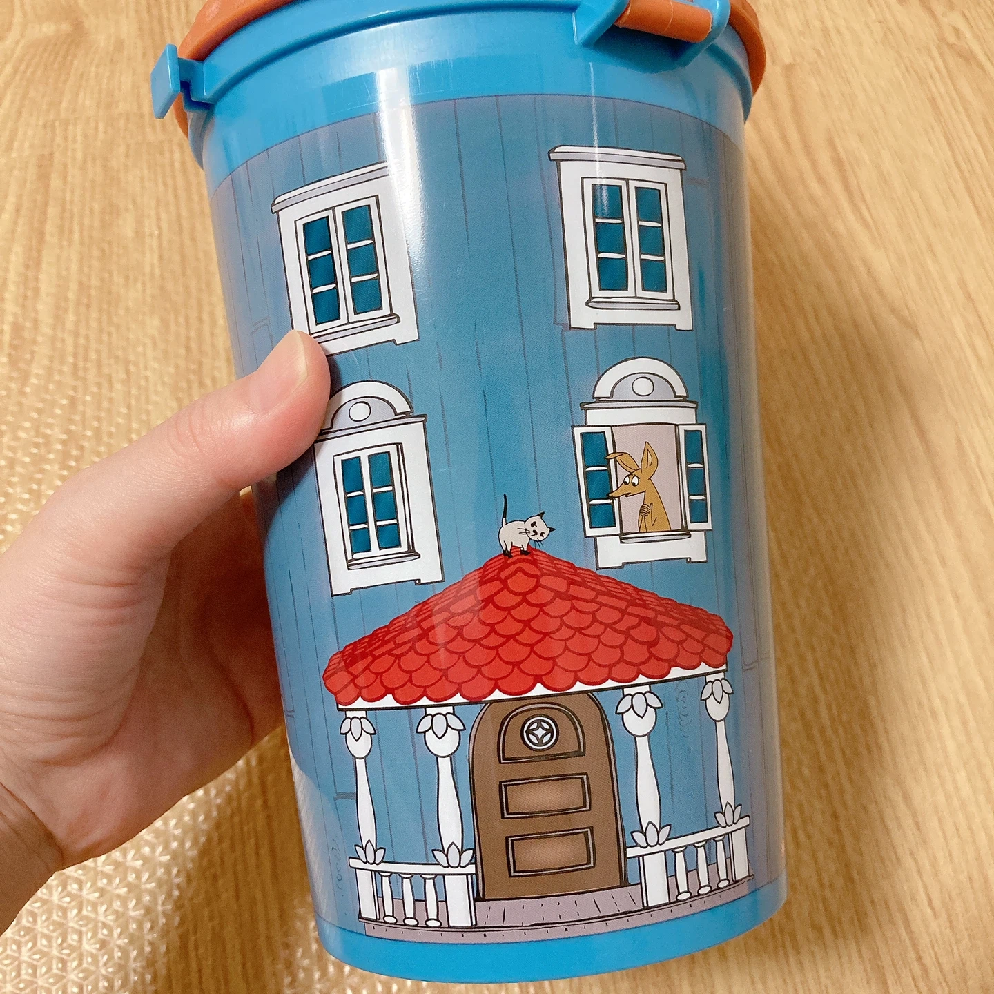 ムーミンのイラストが可愛いポップコーンバケットです。 子供がおもちゃを入れて使っておりました。 目立った傷や汚れはありません。