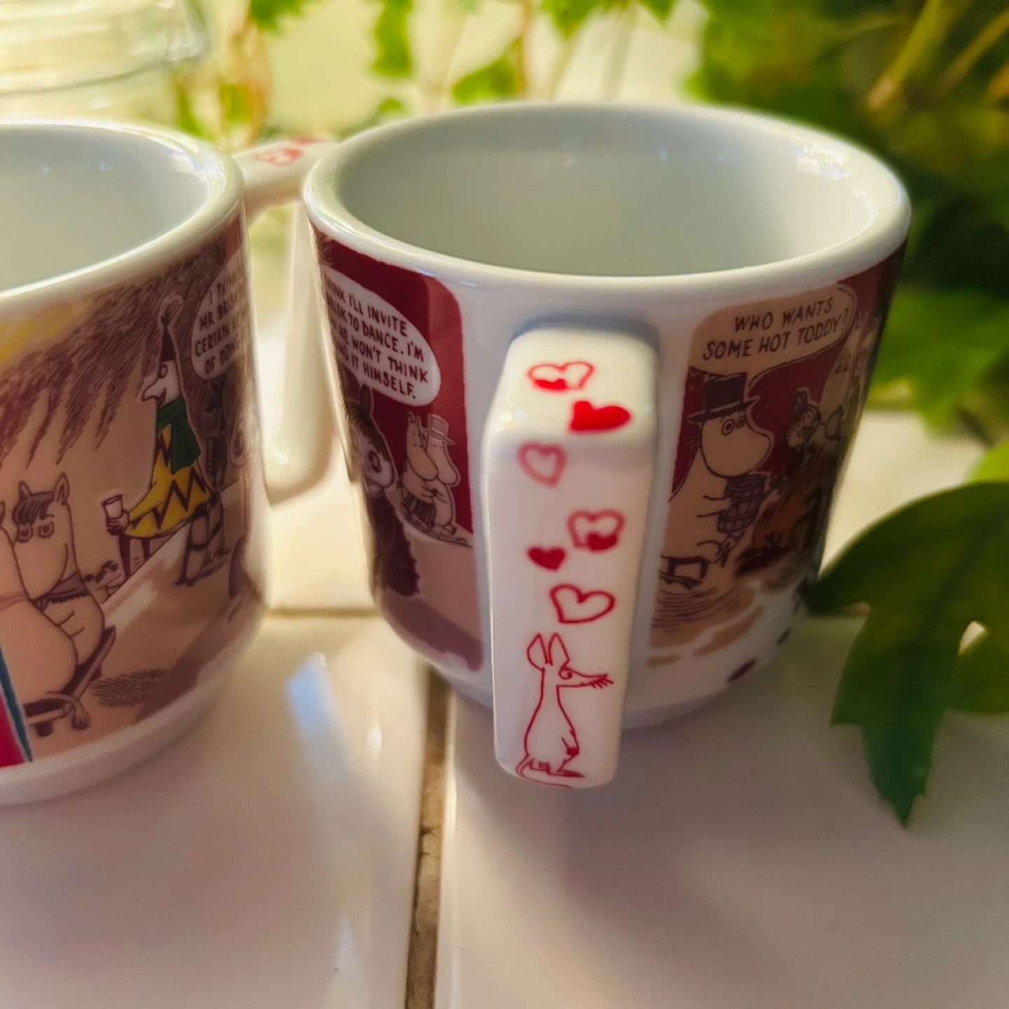 小物入れにしていたので綺麗だと思います。 底部分が少しくぼまったデザインだったり、取っ手の部分にもスナフキンがいたり、温かみのある冬のデザインでとても可愛いです。 こぶりのマグカップになります。 7cm×7cmほどです。 手放すかまだ少し迷ってるのでこのお値段で引き取ってくださる方優先したいです。