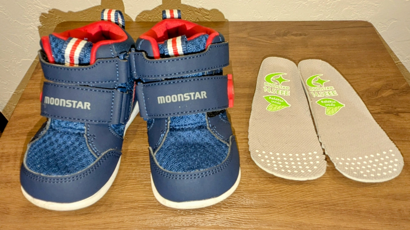 あたたかさ・ブランド:ムーンスター ・サイズ:14.5cm 3E ファーストシューズとして購入し、主に室内で履いていました。 二度程公園で履いたので、靴の裏が汚れています。 洗ってあります。