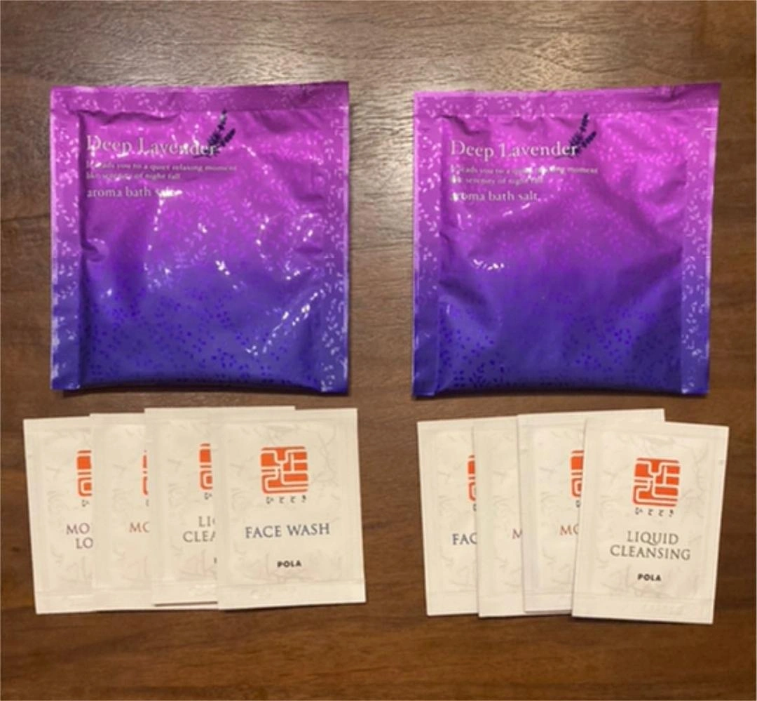 ご覧頂きありがとうございます! 【バスソルト&POLAサンプル 2セット】 ・ディープラベンダー アロマバスソルト 防腐剤・着色料 無添加 香料/天然精油 ・POLA ひととき リキッドクレンジング メイク落とし フェイスウォッシュ 洗顔料 モイスチャーローション 化粧水 モイスチャーミルク 乳液 6月中旬、宿泊ホテルより持ち帰ったものです。 よろしくお願い致します。 ご希望の方はお気軽にご連絡ください。