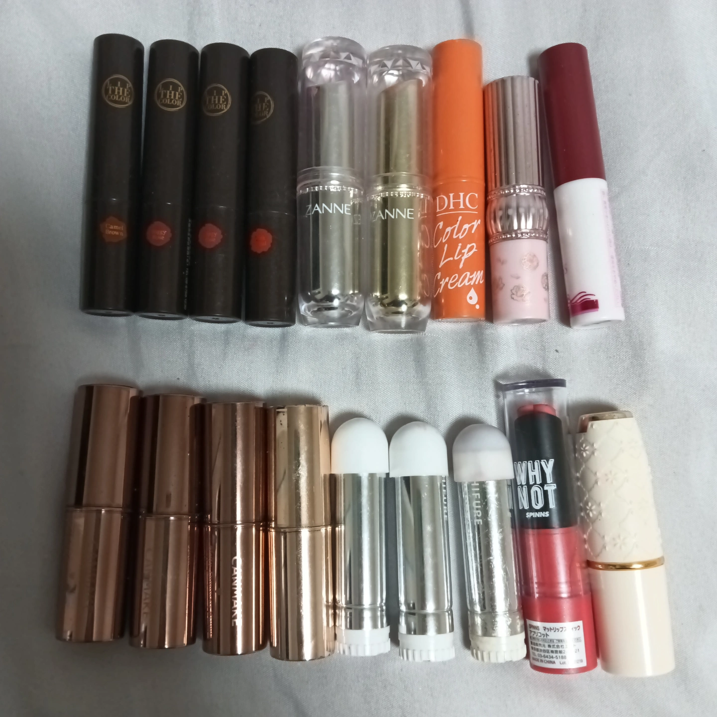 ・LIPTHECOLOR camelbrown foggyrose×2 pinkcoral ・CEZANNE ラスティンググロスリップ401 RS1 ・DHC濃密うるみカラーリップクリームオレンジ ・フォーチュンRHリップカラートリートメント02 ・リップドレスティントBO ・キャンメイクメルティールミナスルージュ 01 T01 T02 T03 ・ちふれ 口紅748 212 418 ・SPINNS マットリップスティックアプリコット ・セザンヌ ラスティング リップカラーN306 504 中古品ですので残量バラバラです。中古品ですのでご理解ある方お取引お願いします。バラ売り可能です。