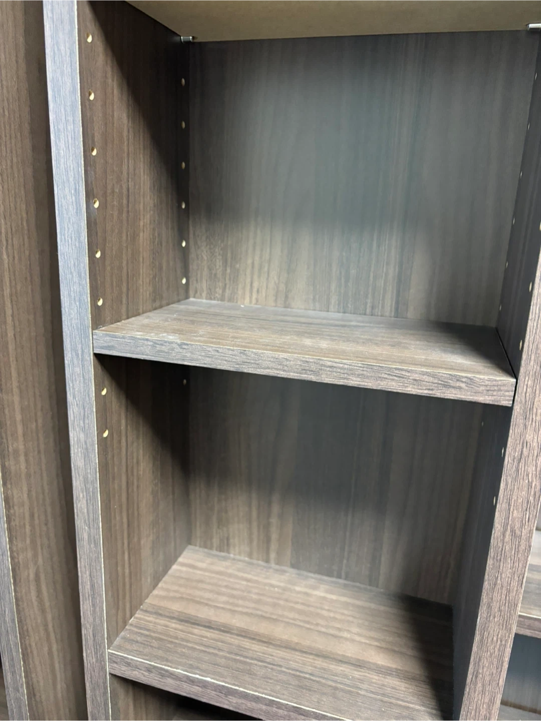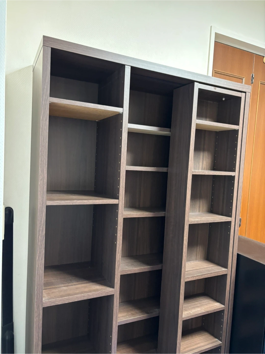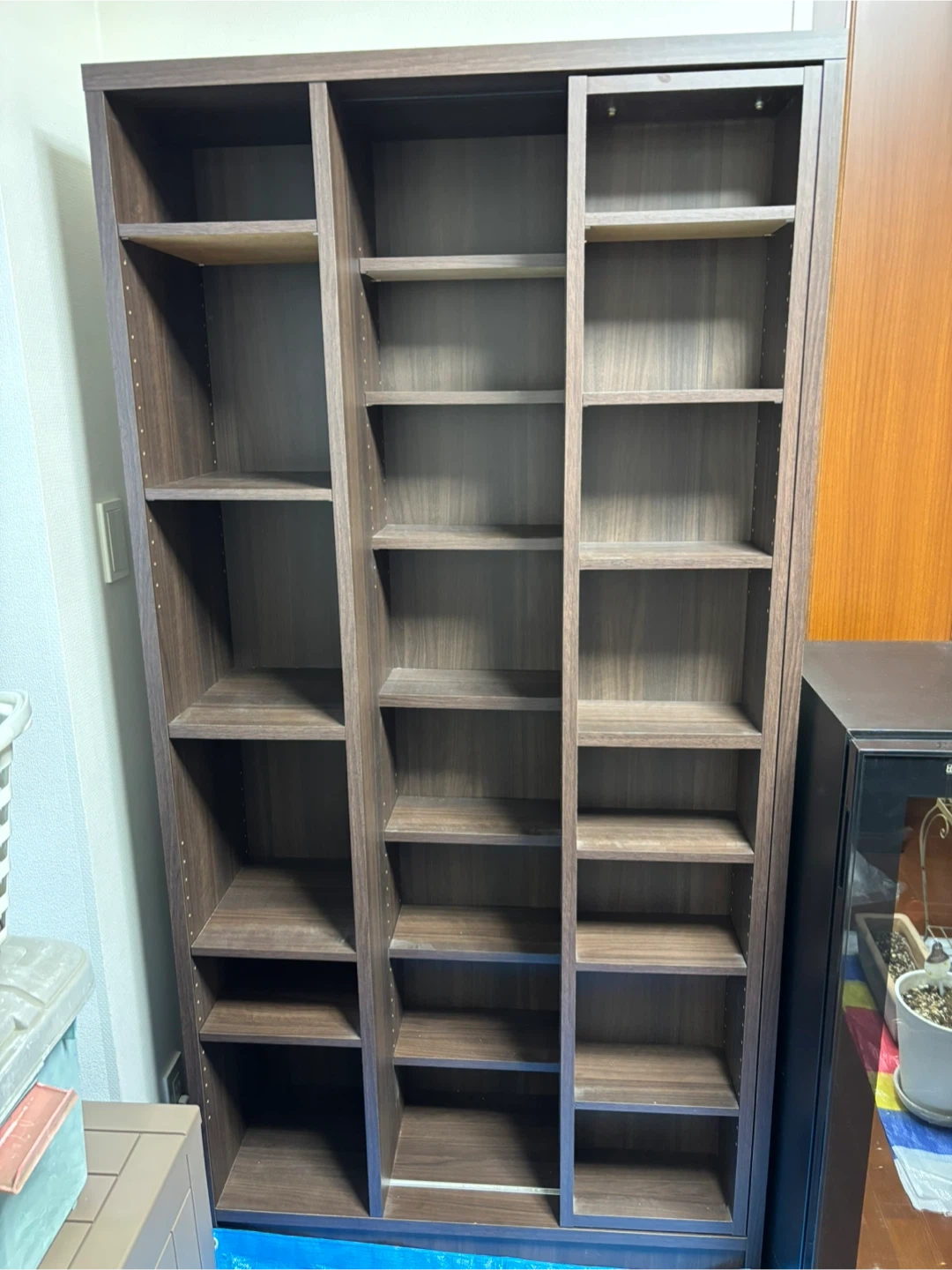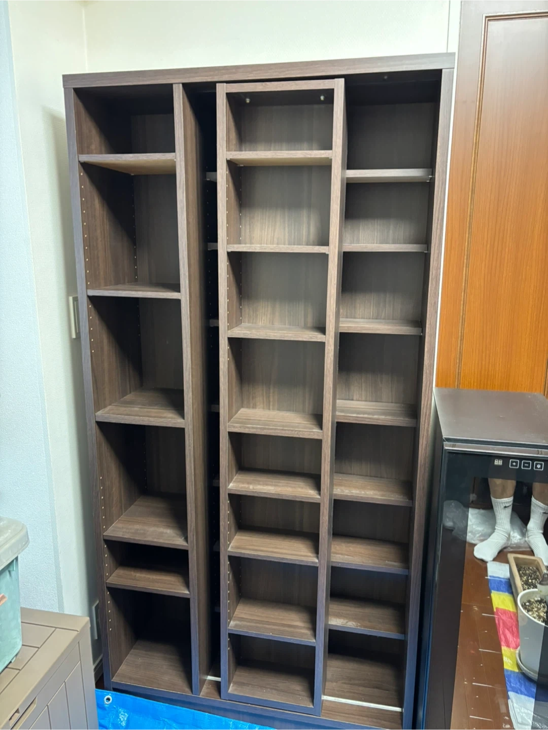 可動式本棚です。 可動棚が少し緩んでいて、左側に寄せた時に多少戻ってしまいます。 ・サイズ 奥の棚 奥行14×幅57cm 棚8段 左の棚 奥行29×幅25.5cm 棚6段 可動式棚 奥行14×幅24.5cm 棚8段 中央の棚は固定、その他の棚は取り外し可能 大きな家具ですので、取りに来てくださる方で運搬できる手段がある方にお願いします。 こちらはマンションの5階、エレベーターございます。 中古品であることご了承ください。 よろしくお願いいたします。