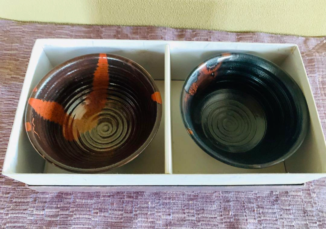 大変趣き深い印象的な夫婦茶碗のセットです。 使いやすい大きさ。 艶もあり、ご飯が美味しそうに映える色味です。 幅 12.5、高さ 7cm お箱入りで、贈り物にも。 自宅保管品、未使用です。 ご了承の程お願いいたします。 カラー···ブラック系、ブラウン系 食器···ペア(2つ)、ご飯茶碗 素材···陶器、その他焼き物 ご希望の方はお気軽にご連絡ください。