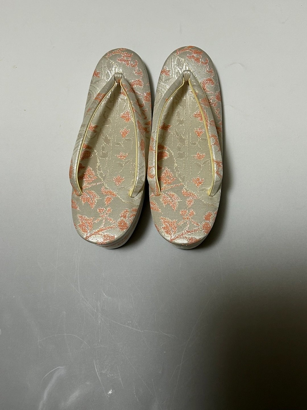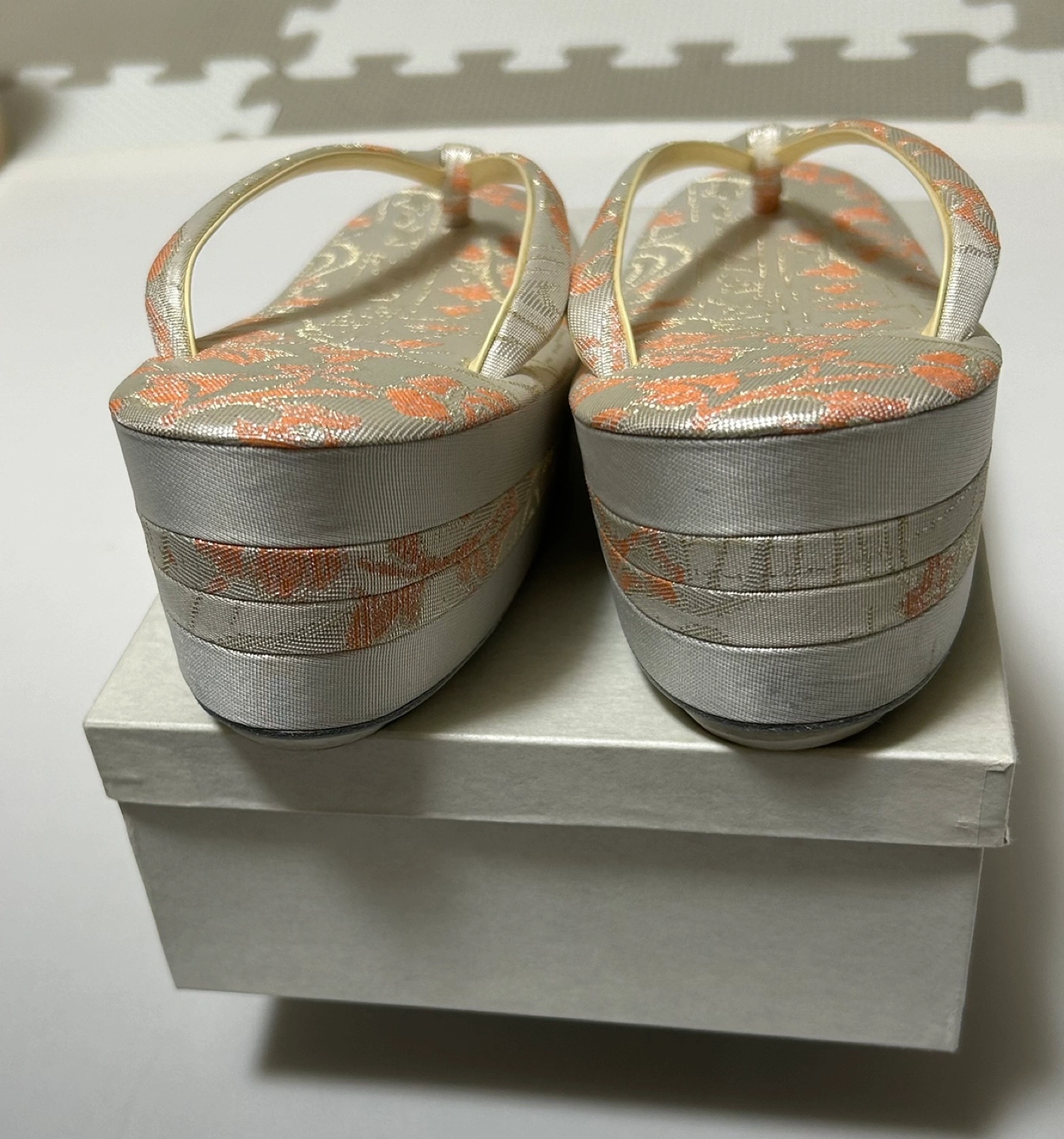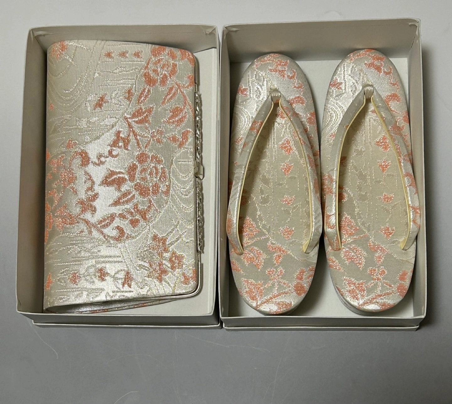 礼装用 草履、バッグセット 商品状態:結婚式で1回だけ使用、自宅保管 バッグの内部に所々シミがありますがそれ以外はキズ、汚れ等ありません。 ピンク、オレンジ系の上品な花柄。 ▪️草履 長さ:約24cm 踵の高さ:6.5cm ▪️バッグ タテ×ヨコ:約13.5×22cm マチ:約5cm チェーン付きです 内側に数ヶ所シミがあります(写真をご覧下さい) 中古品であるということをご了承の 上、ご購入ください。 ご不明点等ございましたらご連絡ください。