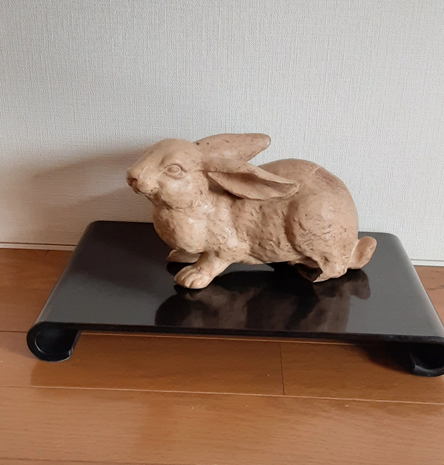 日本画を焼き付けたタイル 飾り物 木製スタンド付き 約15cm