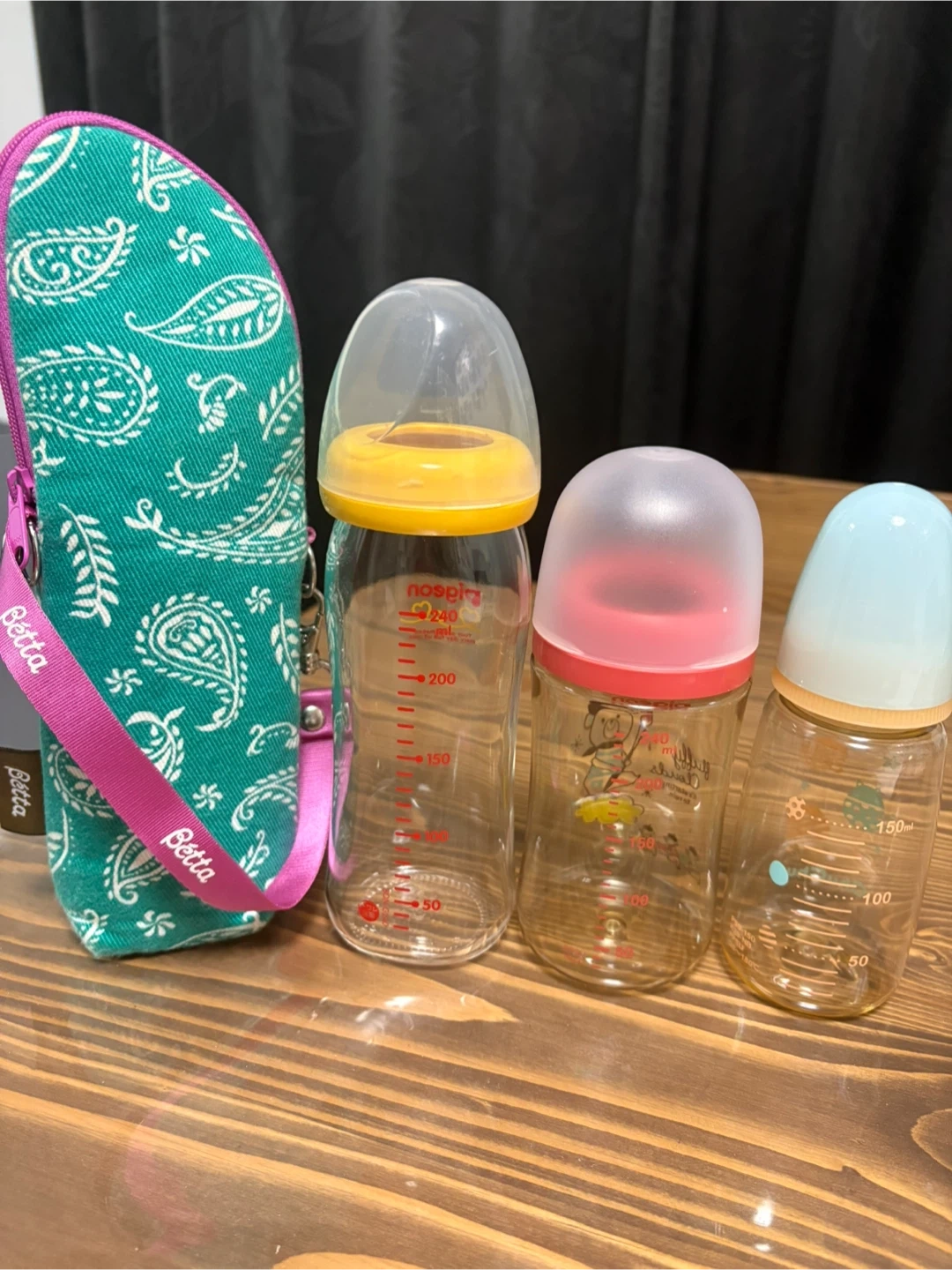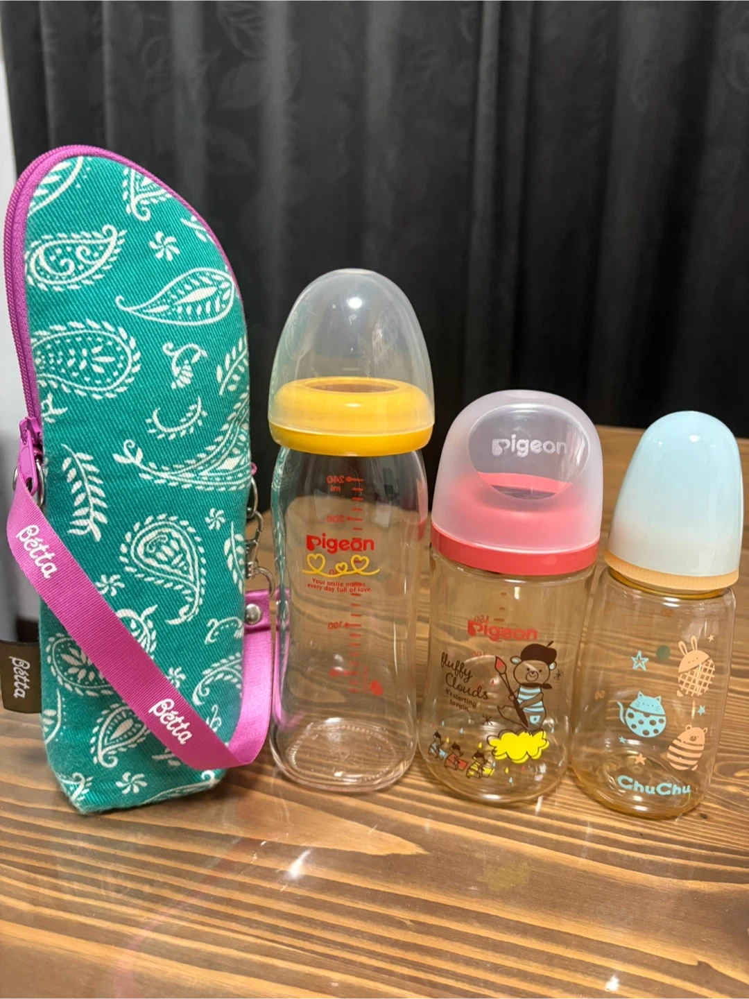 ⚫︎ピジョン ガラス 240ml ⚫︎ピジョン プラスチック 240ml未使用 ⚫︎チュチュ プラスチック 150ml未使用 ⚫︎哺乳瓶ポーチ ピジョンガラス哺乳瓶以外は頂き物で未使用です。煮沸消毒だけした為開封済みにはなります。