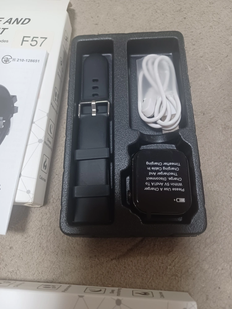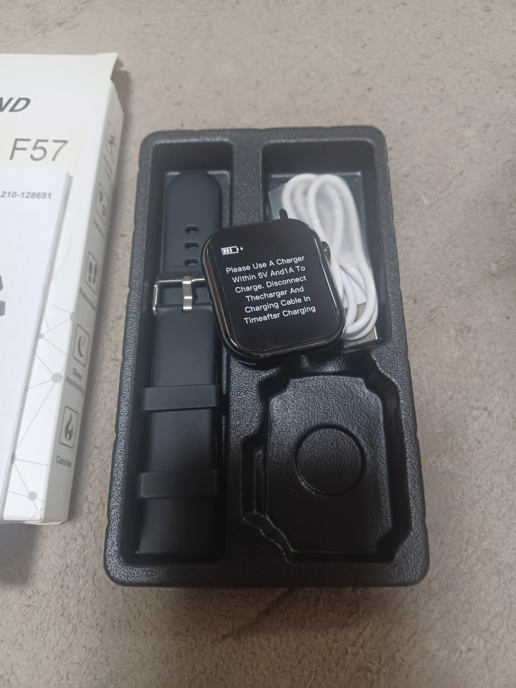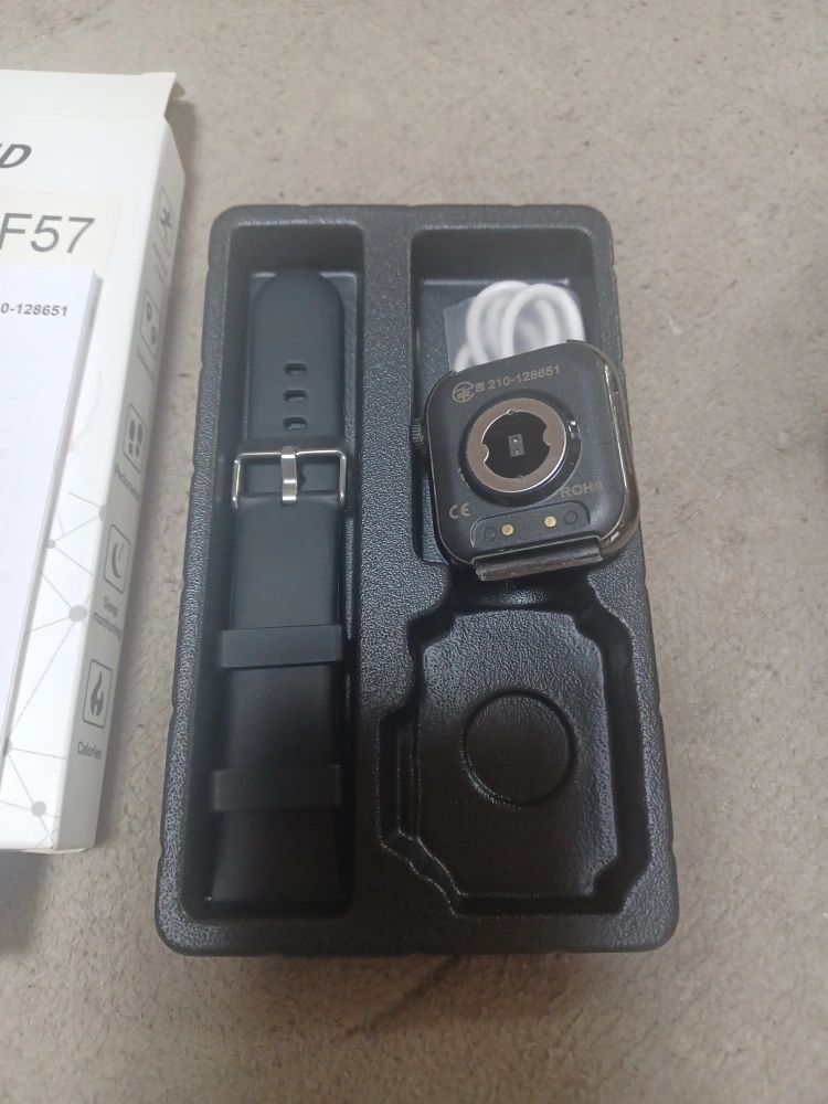 【情報】 型番:F57 【付属品】 充電ケーブル、箱、取扱説明書 スマートウォッチF57は、多機能で日常使いに適したスマートウォッチです。主な特徴は以下の通りです。 主な特徴 * ディスプレイ: 1.91インチの大型カラースクリーン(解像度280x340)を搭載しており、文字が見やすく、日差しの下でも視認性が高いとされています。フルタッチ操作に対応しています。 * Bluetooth通話機能: スマートフォンとペアリングすることで、スマートウォッチから直接通話が可能です。これにより、スマートフォンを取り出す手間が省け、両手が自由になり、生活や仕事の効率向上に貢献します。 * 健康管理機能: * 皮膚温変動測定 * 血中酸素濃度測定 * 心拍数測定(24時間健康管理に対応) * 血糖値測定(ただし、医療機器ではないため、参考値として捉える必要があります) * 睡眠モニター * 歩数、距離、カロリー消費などの活動量計 * 通知機能: 着信、メール、LINE、Twitter、Instagram、Facebook、Whatsappなどのアプリからのメッセージを受信し、ディスプレイに表示します。会議中や電車内でも通知を見逃しにくく、スマートウォッチから電話を拒否することも可能です。 * 防水性能: IP67レベルの防水防塵設計で、日常生活での手洗いや雨などでの使用に耐えられます。(ただし、完全防水ではないため、お風呂など水に浸ける行為は推奨されていません。) * バッテリー: 200mAhの大容量バッテリーを搭載し、約2時間のフル充電で約6日間使用できるとされています(使用頻度により変動あり)。充電は磁気充電式です。 * 運動モード: 複数の運動モードが搭載されており、運動時間、心拍数、消費カロリーなどを表示できます。 * その他機能: * 天気予報 * 音楽再生コントロール * 遠隔カメラシャッター * アラーム * データ同期・分析 * 電卓 * 音声アシスタント(Siriなど)の呼び出し 対応OS: Android 4.4以上、iOS 9.0以上に対応しており、専用アプリ「H Band」や「GloryFit」を使用する製品も見受けられます。 F57は、日々の健康管理や通知の確認、手軽な通話など、スマートウォッチに求められる基本的な機能をバランス良く備えたモデルと言えるでしょう。ただし、血糖値測定などの医療に関するデータは、あくまで参考値として利用し、正確な診断や治療は専門の医療機関に相談することが重要です。