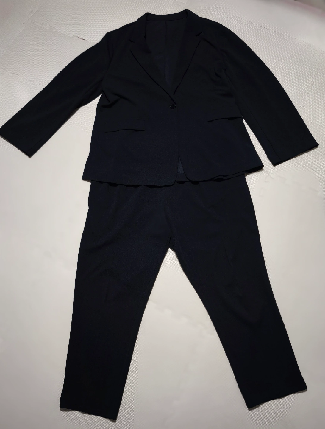 【引っ越しのため、10/12までに取りに来てくださる方限定】 希望引取日時を書いてチャットしてください。(日時が書いていない方とはお取引いたしません。他でも出品していることと、タイミングが合った方優先でお取引いたします。ご了承ください) アッドルージュのレディースのパンツスーツ上下セットです。 数回着用し、サイズが合わなくなったためクリーニング後クローゼットにて自宅保管していました。 片方の膝がわずかに擦れている感じがしたので(写真に撮ってみたけれど写真では伝わらない感じ)やや傷や汚れありにしておりますが、 まだまだ使えると思います。 ※写真によって白っぽく写っている箇所がありますが、光の加減で、色褪せ等はありません。 ・カラー:ブラック ・サイズ:4L(バスト107~115、身長154~162、ウエスト93~101cm) ・素材:ポリエステル98%、ポリウレタン2% ・使用感少なめ あくまで中古品であることご了承ください。 よろしくお願いいたします。