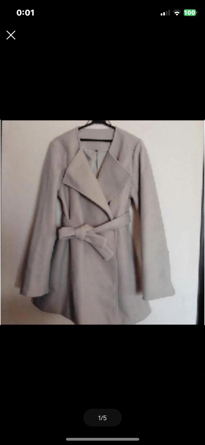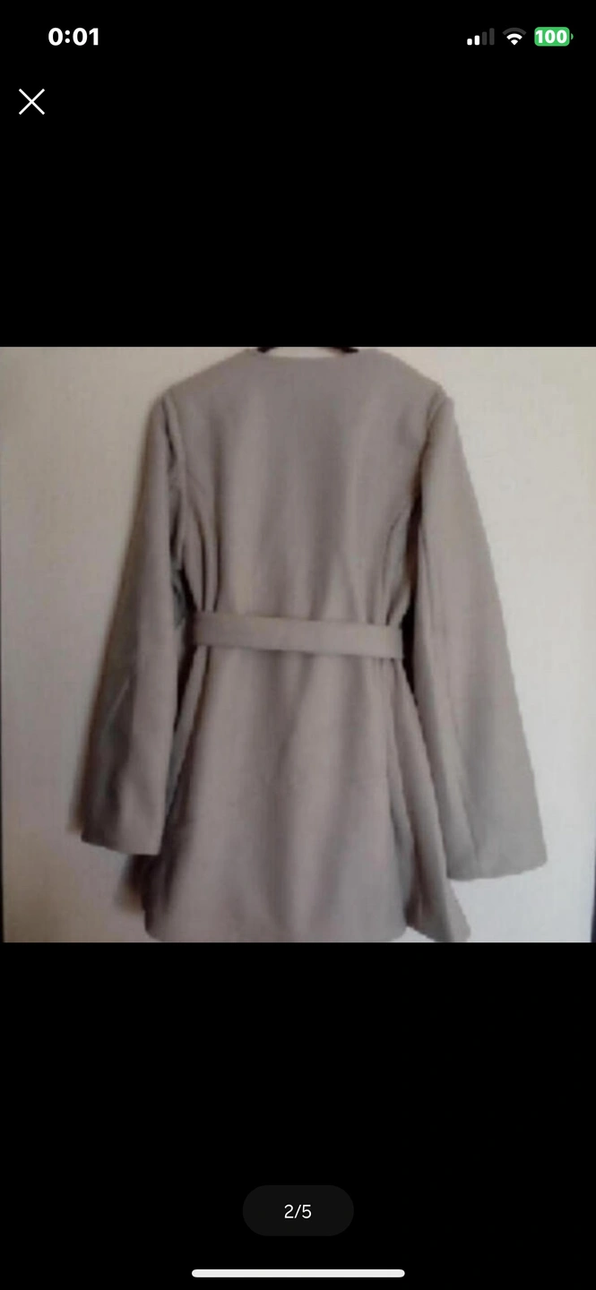 A ラインコート 大きめ 上品な色合いとAラインが可愛いらしいコートです。 サイズ XL←表記はXLですが着用感は3Lです。 (当方身長170でLL着用していますが肩が落ち袖は手の甲が隠れます。 ベルト位置が鳩尾下位の位置になったのでお袖長めを希望の方にはぴったりかと。平置き採寸を参考にしてください。) 平置き採寸 着丈85センチ 肩幅43センチ 袖丈67センチ カラー ほんのりグリーンが入ったベージュ 両サイドポケット 首周りのエリが無いのでスッキリとした印象になり マフラーなどがキレイにご利用できるデザインです。
