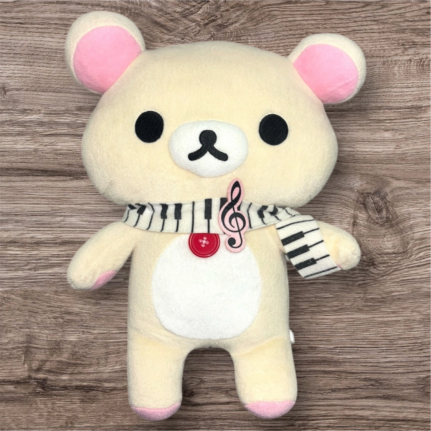 コリラックマのぬいぐるみ ピアノの鍵盤デザインのマフラーに音符も付いてて可愛い❤ クローゼットに閉まったままだったので、特に目立った汚れ等はありません。 ☆洗濯済み ☆縦41cm×横(耳両端)31cmくらいです 他サイトでも出品中です。 他で売れた場合、急に削除しますので、ご了承ください