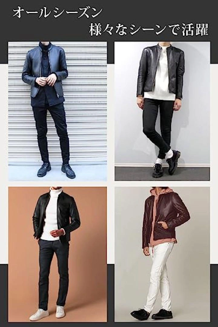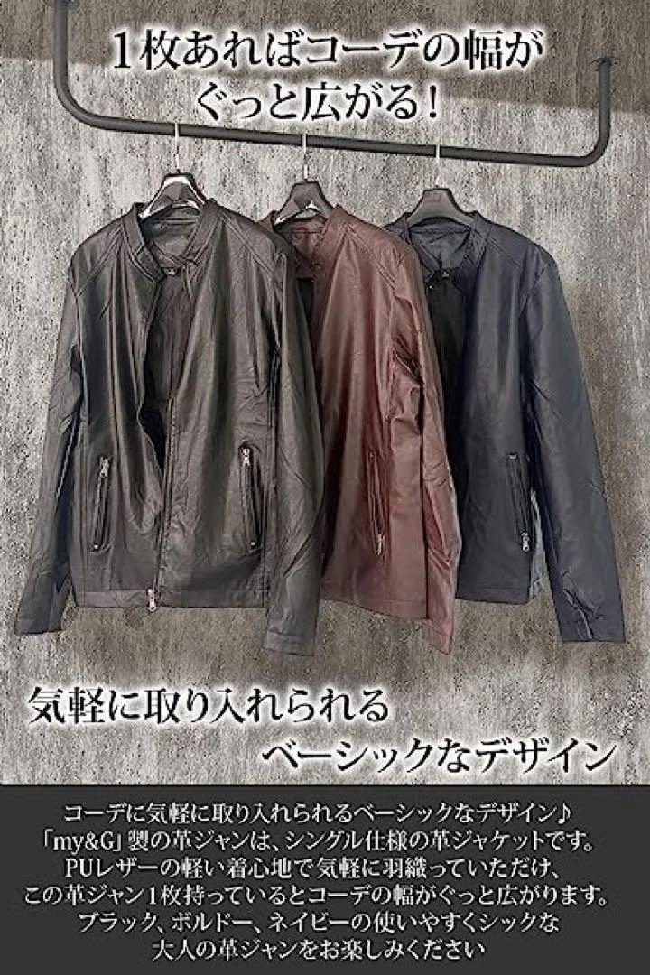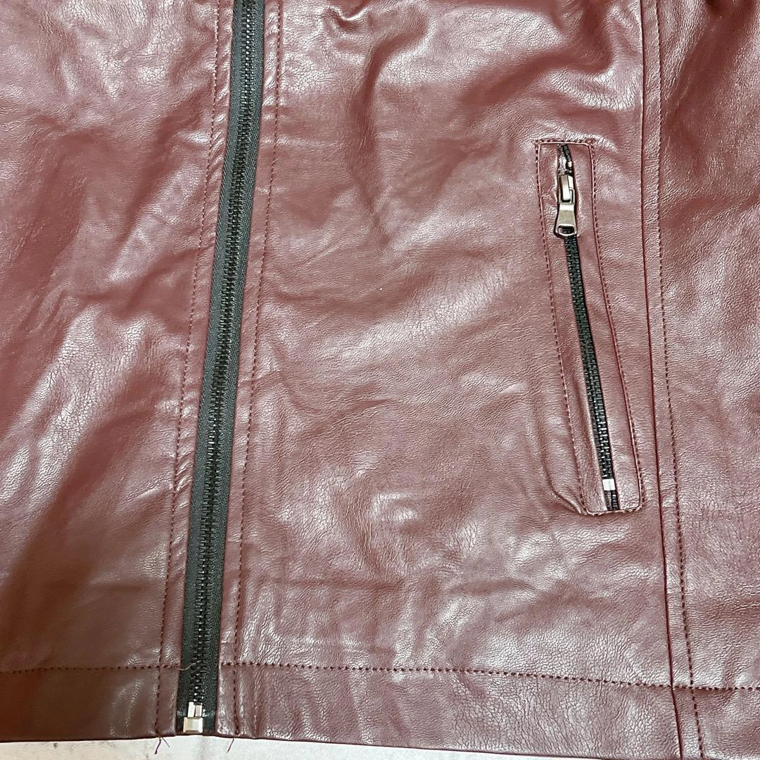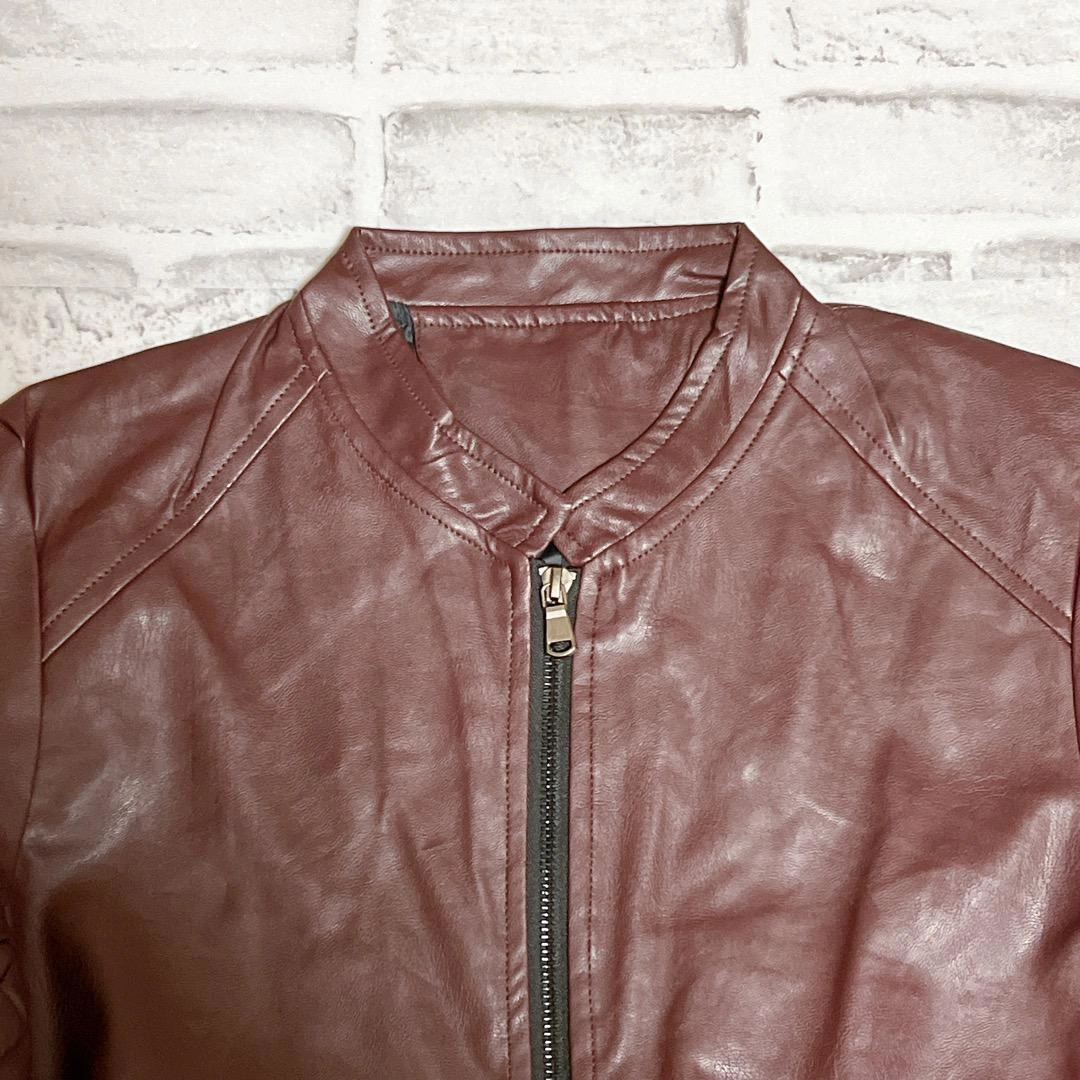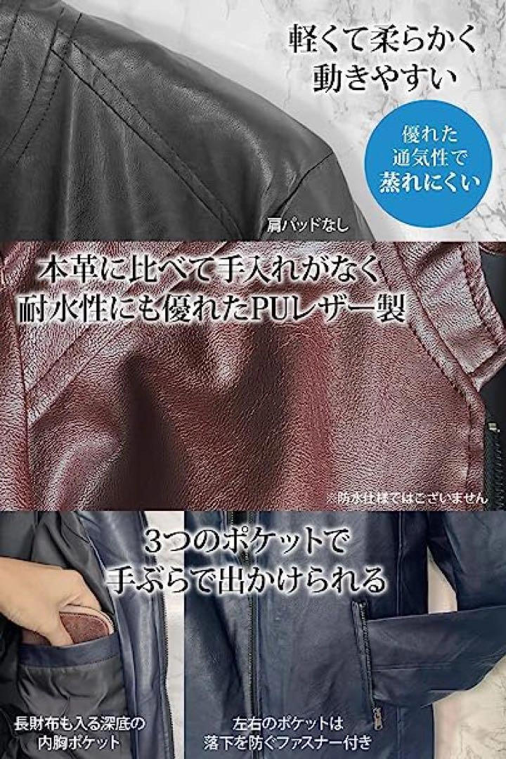 シンプルなニットとパンツのコーデも、 革ジャンを羽織るだけでかっこよく決まります! ご覧頂きありがとうございます★ 【カラー】 ボルドー 【サイズ】 S(表記サイズ:L) ⚠️小さめの作りになっています。(画像13枚目をご確認ください) サイズは2サイズ程大きめをお選びいただく事をおすすめします。 ↓サイズ・色違いもご用意してます 【素材】 メイン素材: PUレザー 素材構成: 100% 分類外繊維(ポリウレタンレザー) 【 大人の革ジャン 】 コーデに気軽に取り入れられるベーシックなデザイン♪ シングル仕様の革ジャケットです。PUレザーの軽い着心地で気軽に羽織っていただけ、この革ジャン1枚持っているとコーデの幅がぐっと広がります。 【 ソフトで優れた通気性◎ 】 本製品の革ジャンは、柔らかい質感と優れた通気性で蒸れにくいため、快適にご着用いただけます。また、PUレザーのため水に強い特徴もあります◎機能性とデザイン性に優れた革ジャンで、お出かけをお楽しみください♪ ※本製品は防水仕様ではございませんのでご注意ください。※小さめの作りになっています。サイズは2サイズ程大きめをお選びいただく事をおすすめします。 【 便利な胸ポケット 】 名刺、財布などをサッとかっこよく取り出せる胸ポケットがついています。腹部のポケットはファスナー付きですので、物を落としにくいのも嬉しいポイントです。 【 様々なシーン 】 シンプルなTシャツとパンツのコーデも、革ジャンを羽織るだけでかっこよく決まります! 他にはニット・セーターと合わせたコーデなどもお楽しみいただけます。日常使い、タウンユース、旅行、学校行事など様々なシーンでご使用ください♪ ご希望の方はお気軽にご連絡ください。