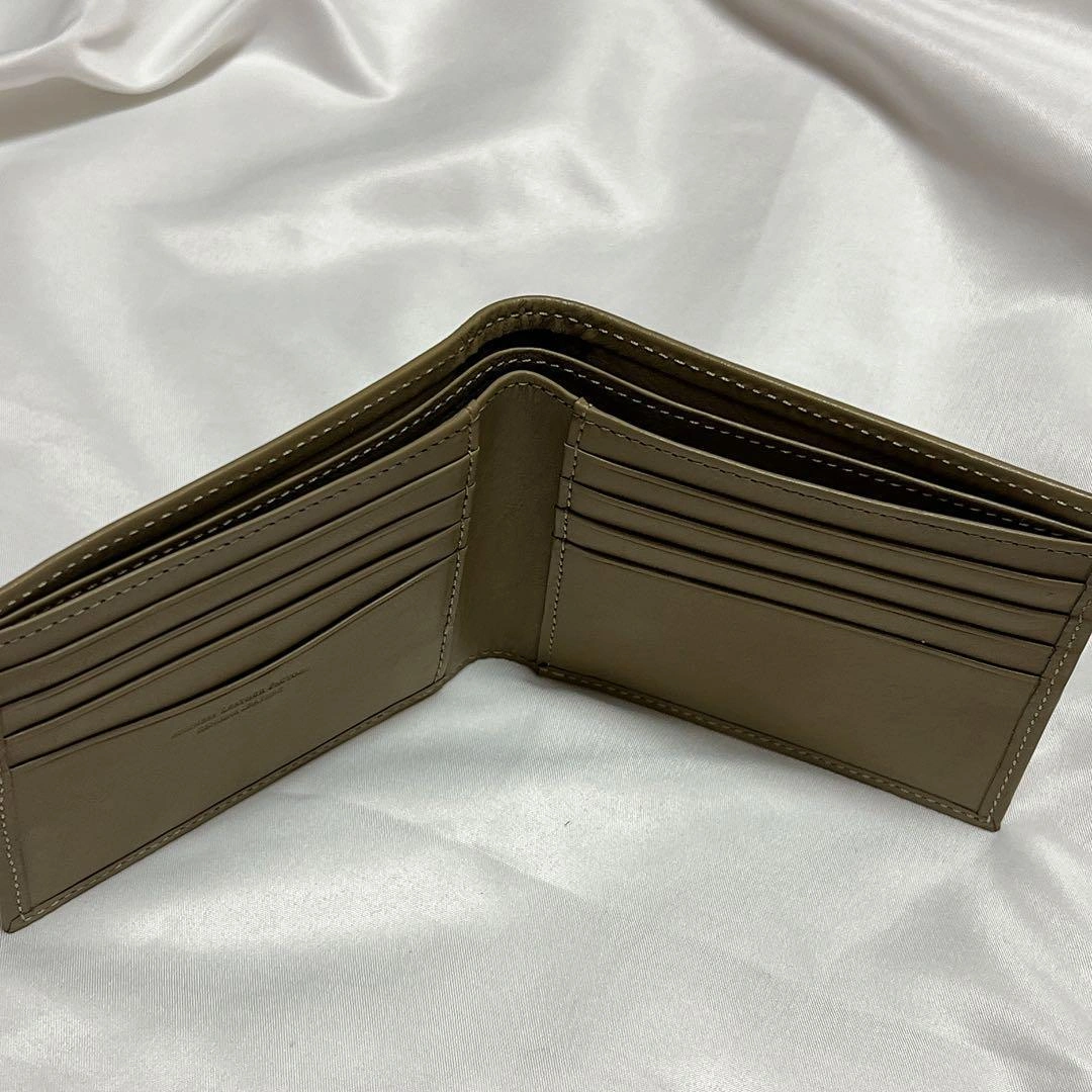 あたたかさBUSINESS LEATHER FACTORY ビジネスレザーファクトリー 二つ折り財布(小銭入れなし) 【参考定価】 8,990円 【カラー】 サンドベージュ ※ モニターや光の加減によって、色味が異なって見える場合があります。 【商品詳細】 素材:牛本革、シャンタン(裏地) サイズ:高さ9.7㎝×幅11cm×厚み1cm 重さ:約71g 機能:札入れ×2、カードポケット×8、 フリーポケット×2 【商品特徴】 ・手のひらに収まるコンパクトサイズ ・お札を種類別に収納できる ・豊富なカードポケット数 【生産地】 バングラデシュの自社工場で生産しています。 【注意事項】 しわや小さな傷、ほくろ等、革の表情に個体差があります。天然素材ならではの個性としてお楽しみください。 本革の自然な風合いを生かすため、最小限の加工で仕上げています。長時間汗や雨に触れさせたり、強くこすったりすると色移りすることがあります。 【メンテナンス】 革専用のクリーナー、クリーム類をご使用ください。(アルコール類は利用できません。) ご希望の方はお気軽にご連絡ください。