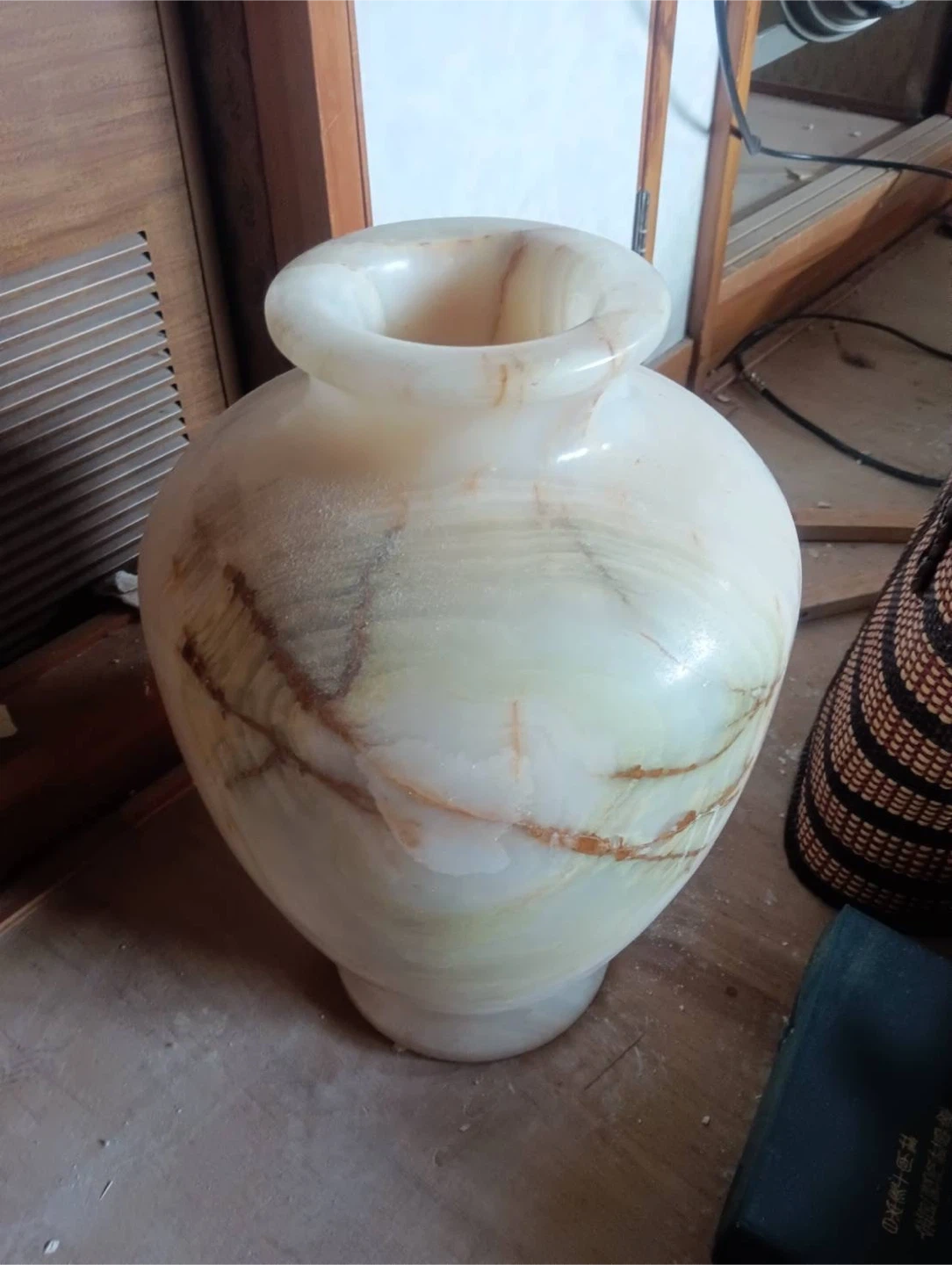 大理石 オニキスの花瓶?壺?です。 ・色:白、オレンジ ・状態:使用感あり 40cmくらいで、20〜30kgくらいあります。 重いです。 家の駐車場まで来ていただくか、お届けいたします。 相場がわからないのでこの値段ですが、値段交渉OKです。 取引希望金額提示して頂けたらと思います。