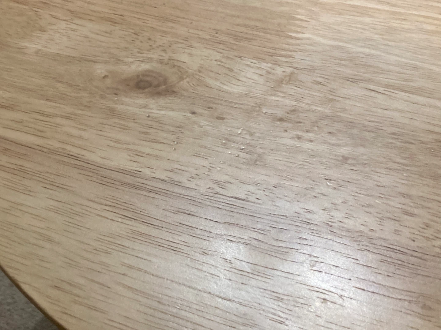 ローテーブル 子供も使用していたため表面に細かい凹み傷あります(元から天然木本来の凹凸も多少あります) 脚はねじ込み方式です、分解してお渡しします。 ■材質 甲板の表面材:天然木(ラバーウッド)、表面加工:ラッカー塗装 ■商品重量 約4.5kg ■耐荷重 天板10kg