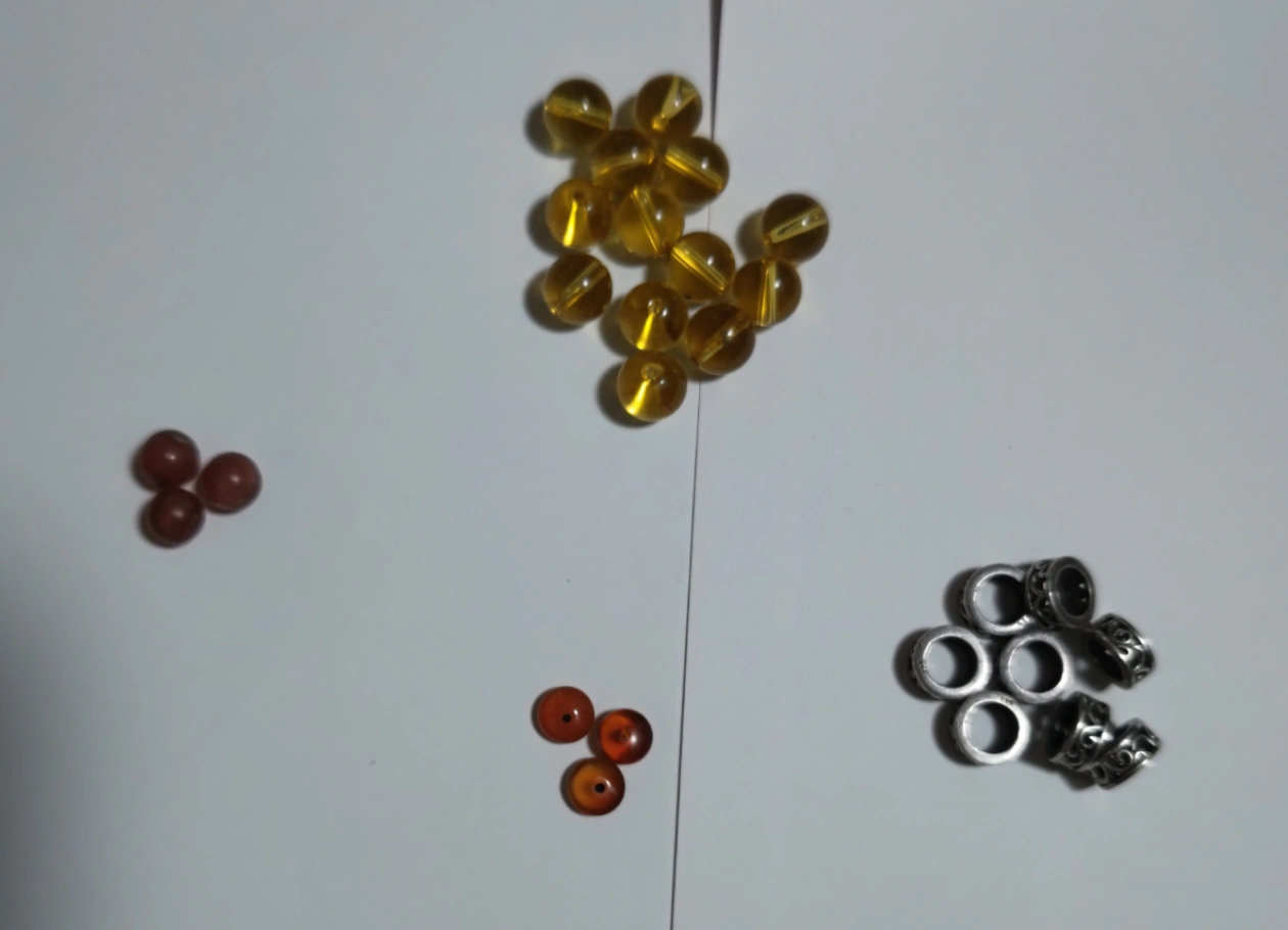 【セット内容】 ①天然石(珠)13個 (タイガーアイ?と思っていましたら、別の念珠の珠類が保管箱から出てきまして、そちらがタイガ一アイのようです。なので、こちらは別の天然石かなと思われます。) ②天然石(珠)3個 (インカローズだったかと思います。) ③天然石(珠)3個 (琥珀?間違っていましたら、申し訳ないです!) ④銀色の輪っか型のパーツ8個 (素材がシルバーかどうか記憶が…、ただひとつひとつのパーツに3桁の数字…925?のように見えますが…の刻印が入っていて、パーツひとつの大きさの わりには 重量感があるように、個人的には感じます。) 以上、4種27個セットです。 元々は、自分個人の念珠が欲しいと思い、珠の状態の天然石を 一から選んでもらって作るオーダーメイドで仕上げてもらった念珠でした。 (当時、4万五千円~5万円程かかったかと記憶しています。) が、紐が切れたこともあり、そのまま修理することなく保管していました。 (担当者の方の助言通り、水晶さざれ の中に置いていました。) 何かの道具などを使ったりして手を加える・作業(洗浄?)すると、光沢感などの復活が期待できるかもしれないですが、(専門業者ではないので、何も手を加えず、)現状のままでの お渡しになります。 なので、仕上げていただいた当時のようなツルツルピカピカの光沢感はなく、年数の経過・使ったモノ(中古品)であることを ご了承下さい。 ハンドメイドなどで、パーツとして活用していただけそうかなと思いましたので、いかがでしょうか? 受け渡しについては、プロフィールをご覧下さい。 プロフィール以外の場所を希望なさる場合は、ご相談下さい。