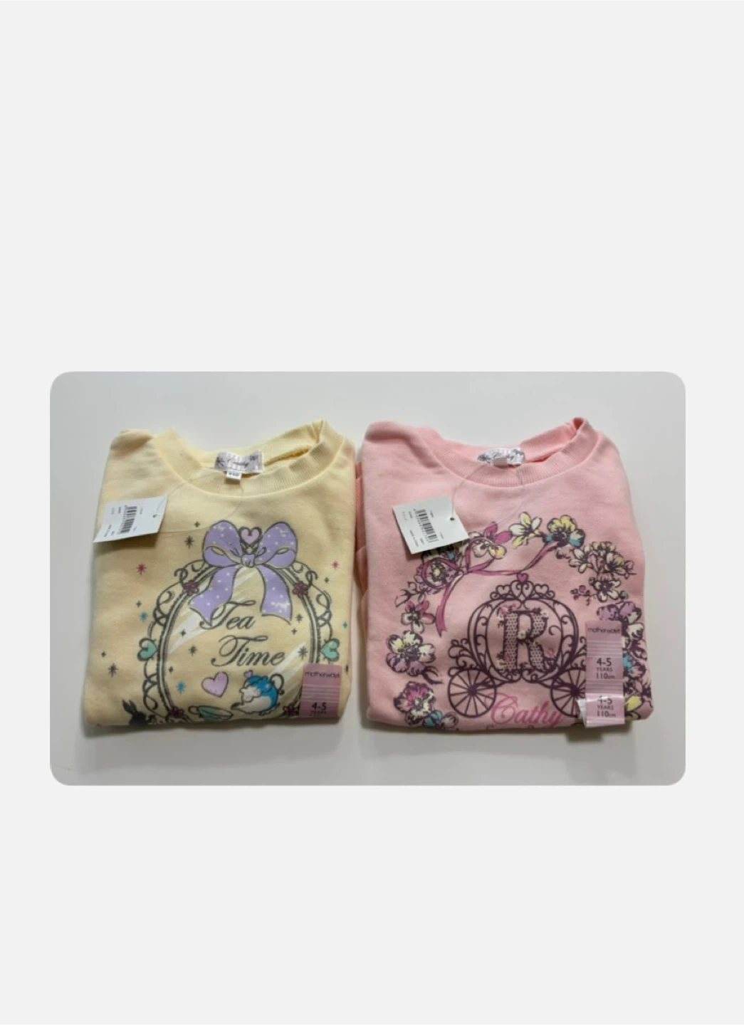 トレーナー2枚セットです バラ売りはしません🙇‍♀️ ・サイズ:110cm (4歳ー5歳) ・カラー:イエロー、ピンク ・状態:ピンクのトレーナーは左下に  小さなほつれあり ・新品タグ付き 着ないうちに、サイズアウトしました