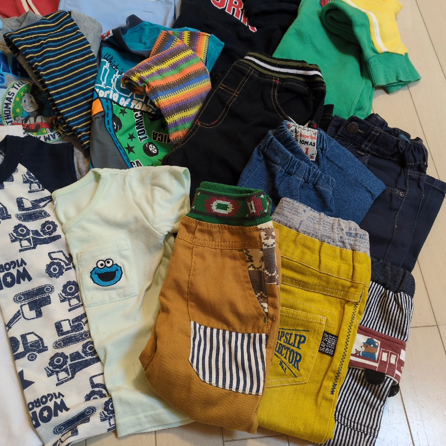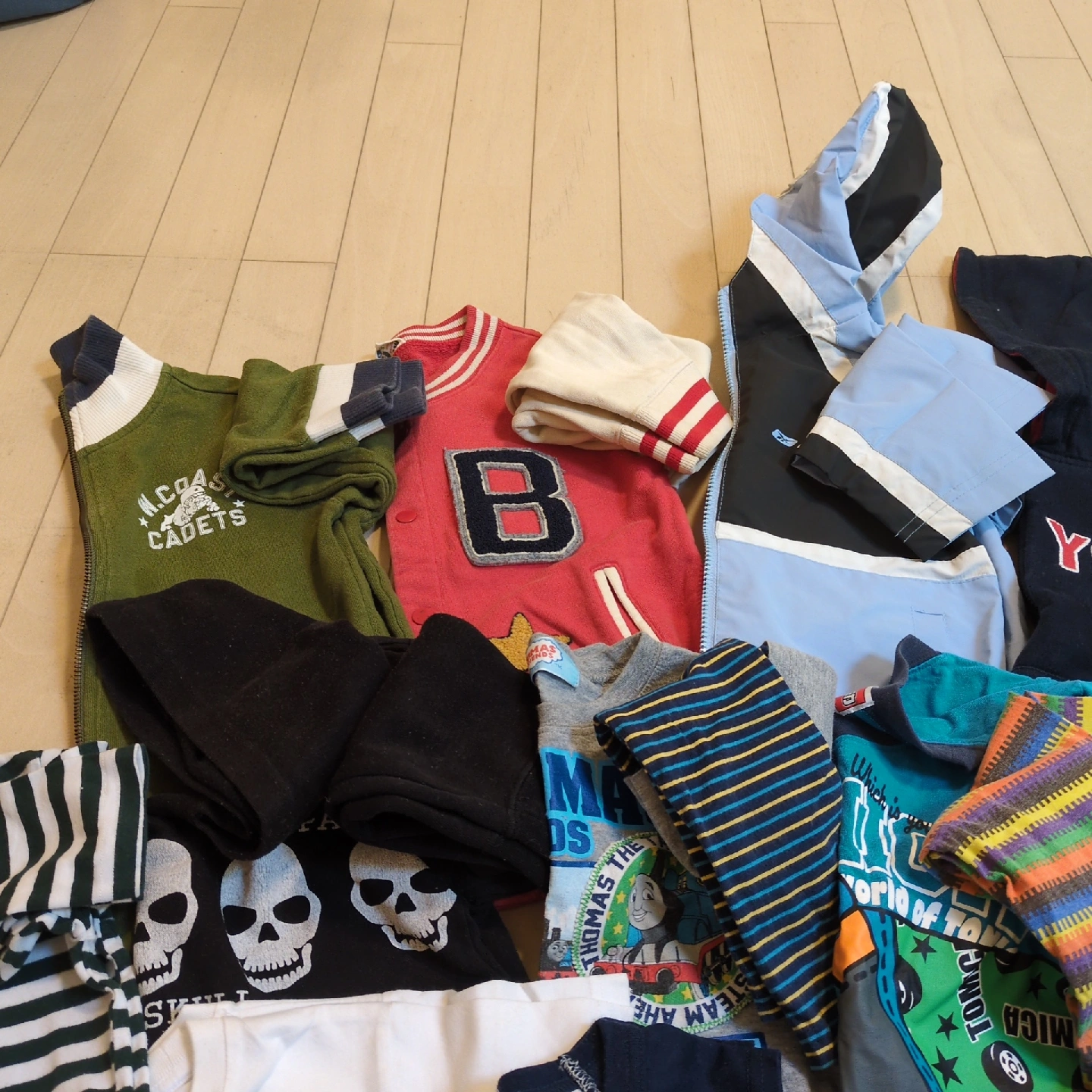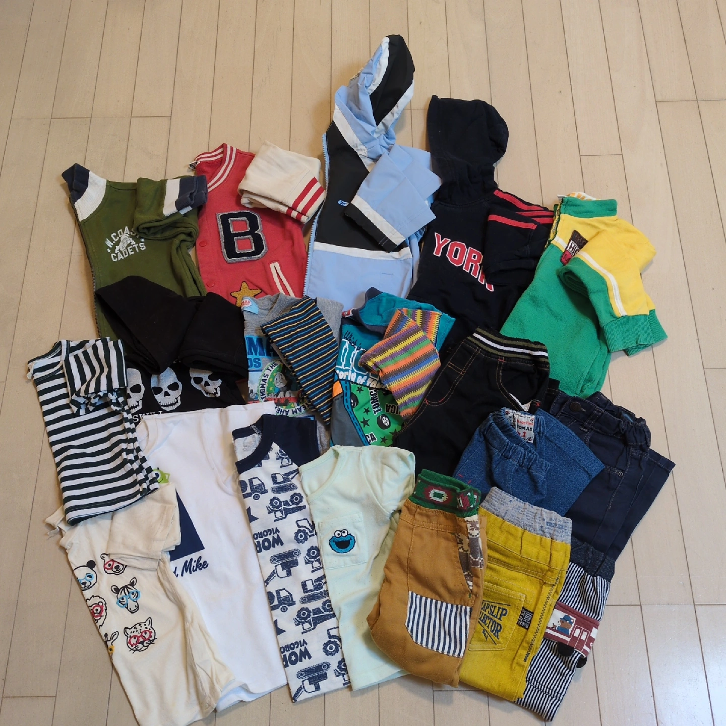 子供服、男の子用です。 サイズは85〜120cmまで混ざっています。 長ズボン、ノースリーブ、半袖、薄手の長袖、厚手の長袖、上着です。 だいぶ着古しているもの、汚れがあるものもあります。 洗替などに必要な方がいましたらお譲りいたします。 他のフリマサイト等にも出品中です。 キャンセル、ドタキャンをしない方、自宅近くまで取りに来ていただける方でお願いします。 メッセージの際にいくつかご希望の日時を記載していただければと思います。 日程が合う方、まとめて譲り受けていただける方を優先させていただきます。 ご質問等あればお気軽にメッセージください。 よろしくお願いいたします。