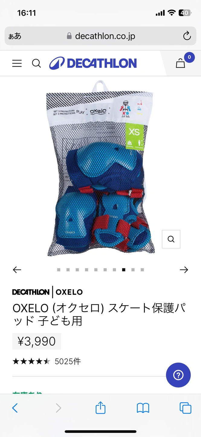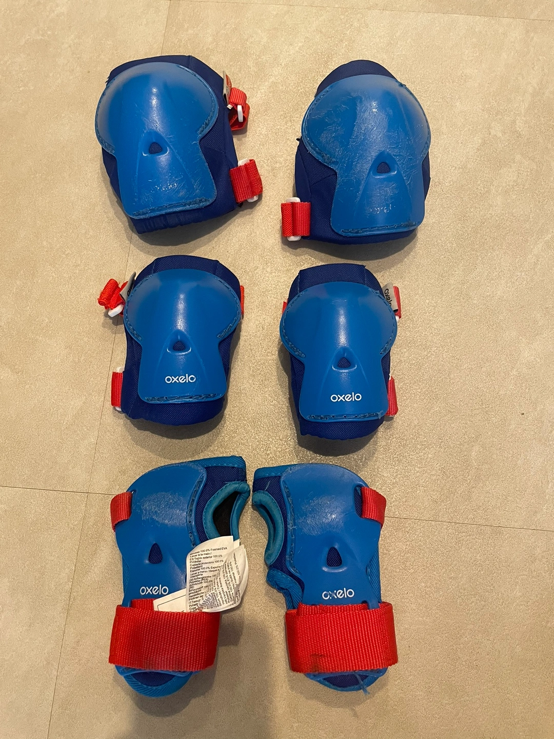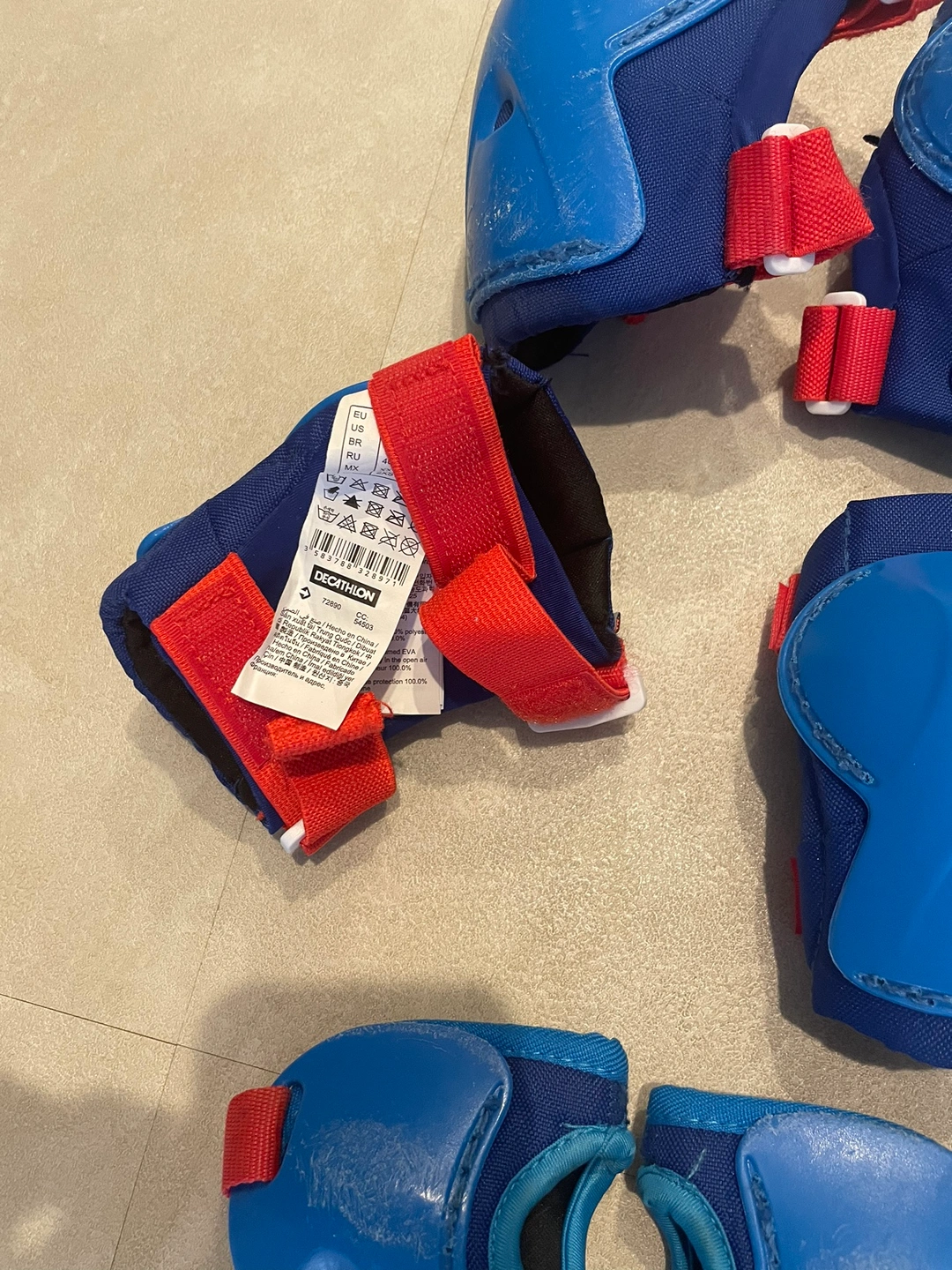 5才頃にローラーブレードと同時購入し、数ヶ月使用しました。膝、肘、手用の3点セット。 傷等ありますが、問題なく使えます。 自転車、スケボー等の練習にも! Decathlon HP この商品です⇩ https://www.decathlon.co.jp/products/kids-3x2-skating-scooter-skateboard-protectors-set-play?_pos=6&_sid=92ced16dc&_ss=r&variant=40914798772304