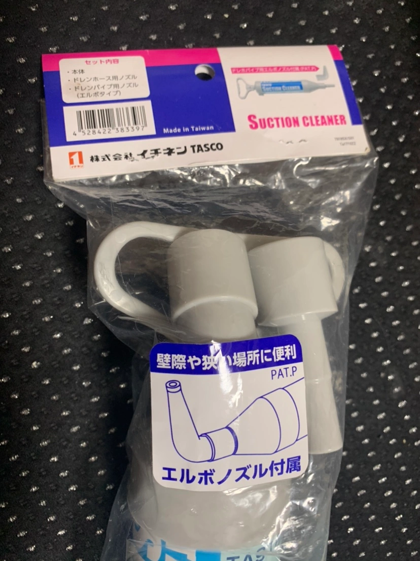 開封して仕様を確認したのみです。 ノズルが2種ついており、狭い場所でも使えます。 開封しましたが、ホチキスでとめました。 新品未使用です。定価以下になります。 自分で対処するつもりが、業者が来ることになり不要になりました。 御入用の方よろしくお願いします。 千石駅受け渡しも可能です。 イチネンTASCO ドレンホースクリーナー 【エアコンの水漏れに】サクションポンプ ドレンつまり取りポンプ エルボノズル付き TA918SX https://amzn.asia/d/iP0BWxZ