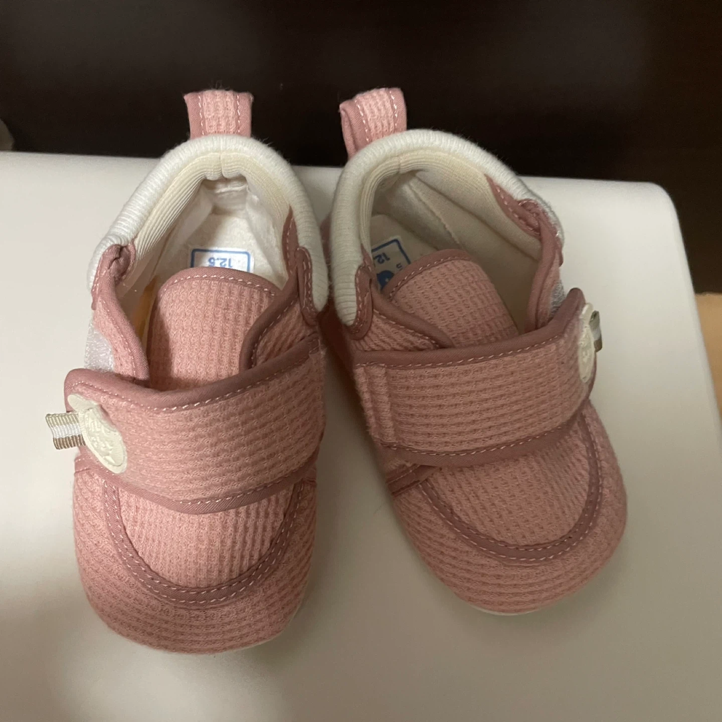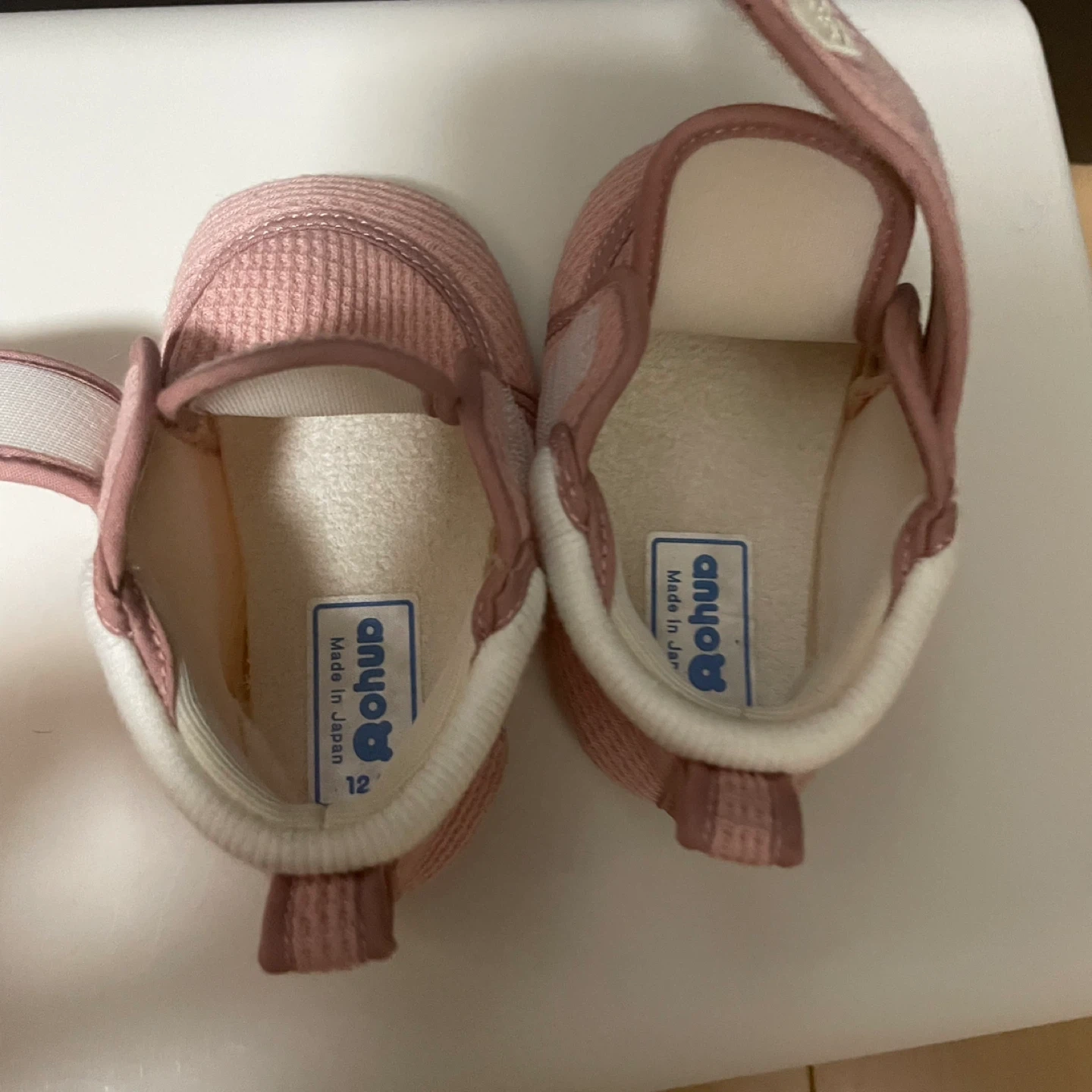あたたかさ破格のためおまとめ買いのみ ご覧いただきありがとうございます! アカチャンホンポの 12.5㎝のファーストシューズです。 ファーストシューズに購入したのですが、履く前にサイズアウトしてしまい、1度試し履きさせたのみです。 一度試し履きしたのみ(数分のみ)のため全体的にとても綺麗な状態ですが、かかと部分や底部分に 若干ですが汚れがありますので、気にならない方のみご購入をお願いします(>人<;) 少しでも気になる方、完璧を求める方はは購入をご遠慮ください。 自宅保管・中古品になりますので、中古品にご理解いただけるかたのみご購入ください。 詳しい状態についてはお写真にてご確認の上、ご購入ください。 以下商品説明です。 ☆.。.†:*・゜☆.。†.:*・゜☆.。†.: よちよち歩きでも履きやすい、やわらか素材の軽いシューズです。 履き口が大きく開いて履かせやすく、つま先ゆったりの幅広設計。 合わせやすいシンプルデザインです。 [足首部分]リブ素材 [底部分]すべり止め付き anyo ブランド