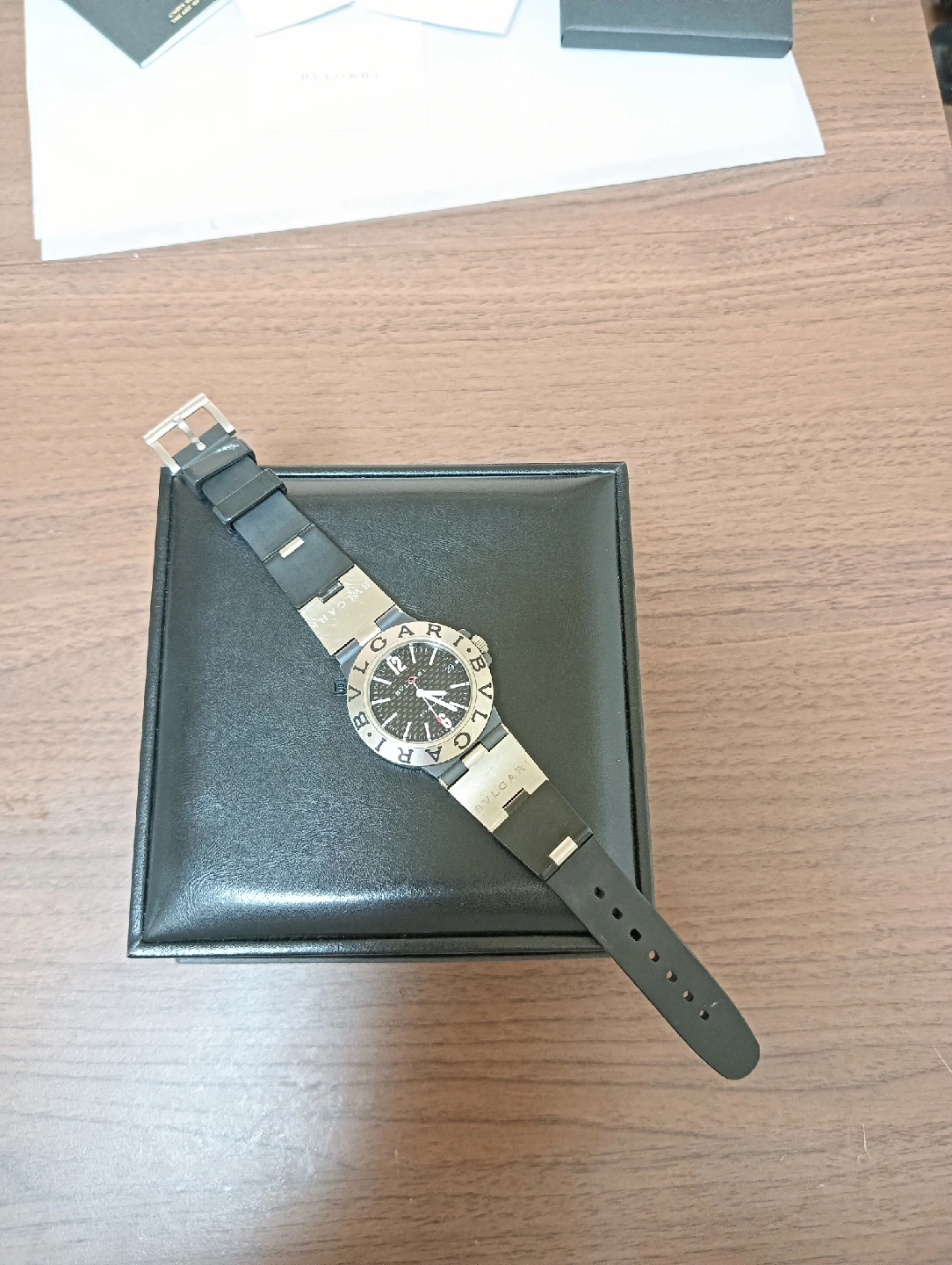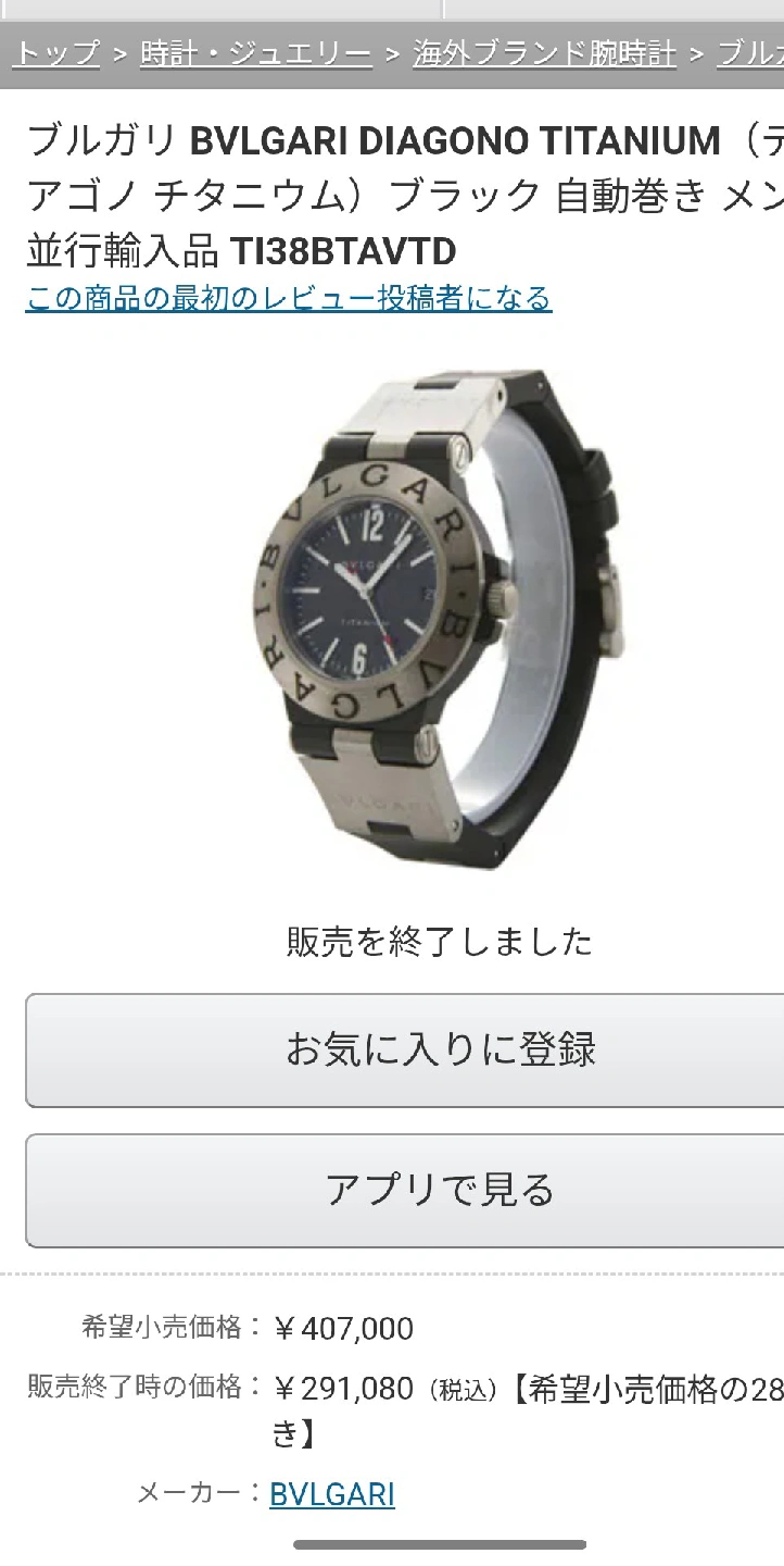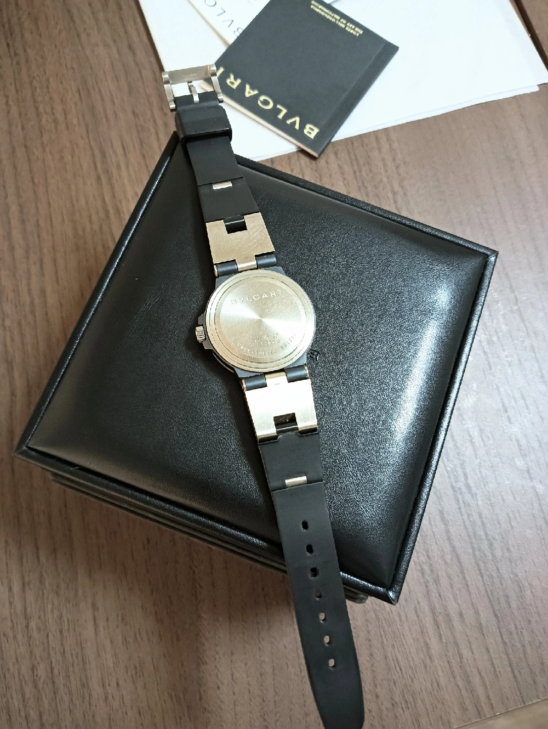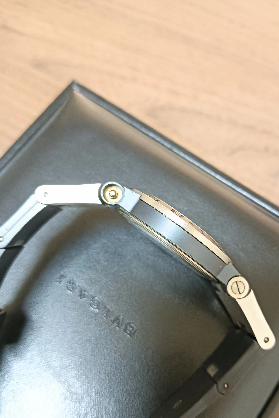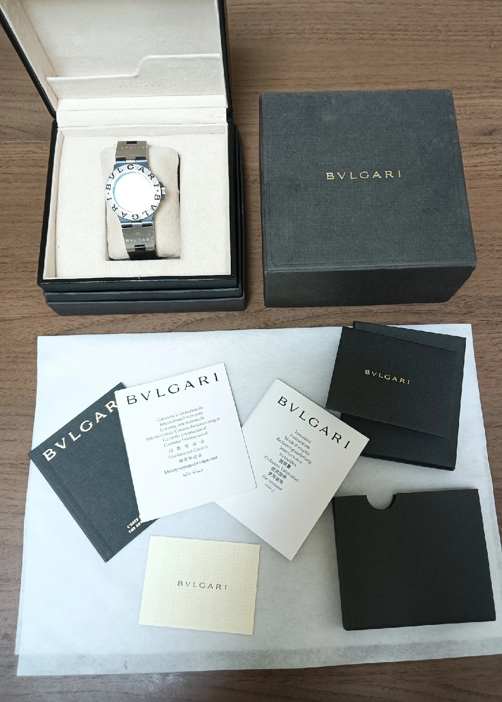 ★★ BVLGALI ブルガリ ディアゴノ チタニウム 腕時計 正確作動 日差±10秒程 型番 TI38BTA 販売価格 約407,000円 購入時の付属品全部付き。 ★★ ディアゴノの自動巻きオートマチックデイト38チタニウムシリーズです。 写真の通り全体的にも良い状態ですが、使用に伴うスレは感じるのでご容赦。 ★注意★ シッカリ閉まってますが、右側下ののラグピン部分の台座が一つ損失してます。 モチロン普通にベルトが取れたりせずに使用は出来てます。 ★★ 腕周り フリー color シルバー&ブラック 購入時の付属品は全部有ります。 正規箱、ケース、国際保証書、冊子等付き。 ★★ BVLGARIのDIAGONO TITANIUMは、チタン製の軽量で耐久性に優れた腕時計です。 - ブランド: BVLGARI - モデル: DIAGONO TITANIUM - 色: ブラック - 素材: チタン - 特長: 自動巻き 日付表示機能 - 付属品: 箱、説明書 - 価格: 407,000円