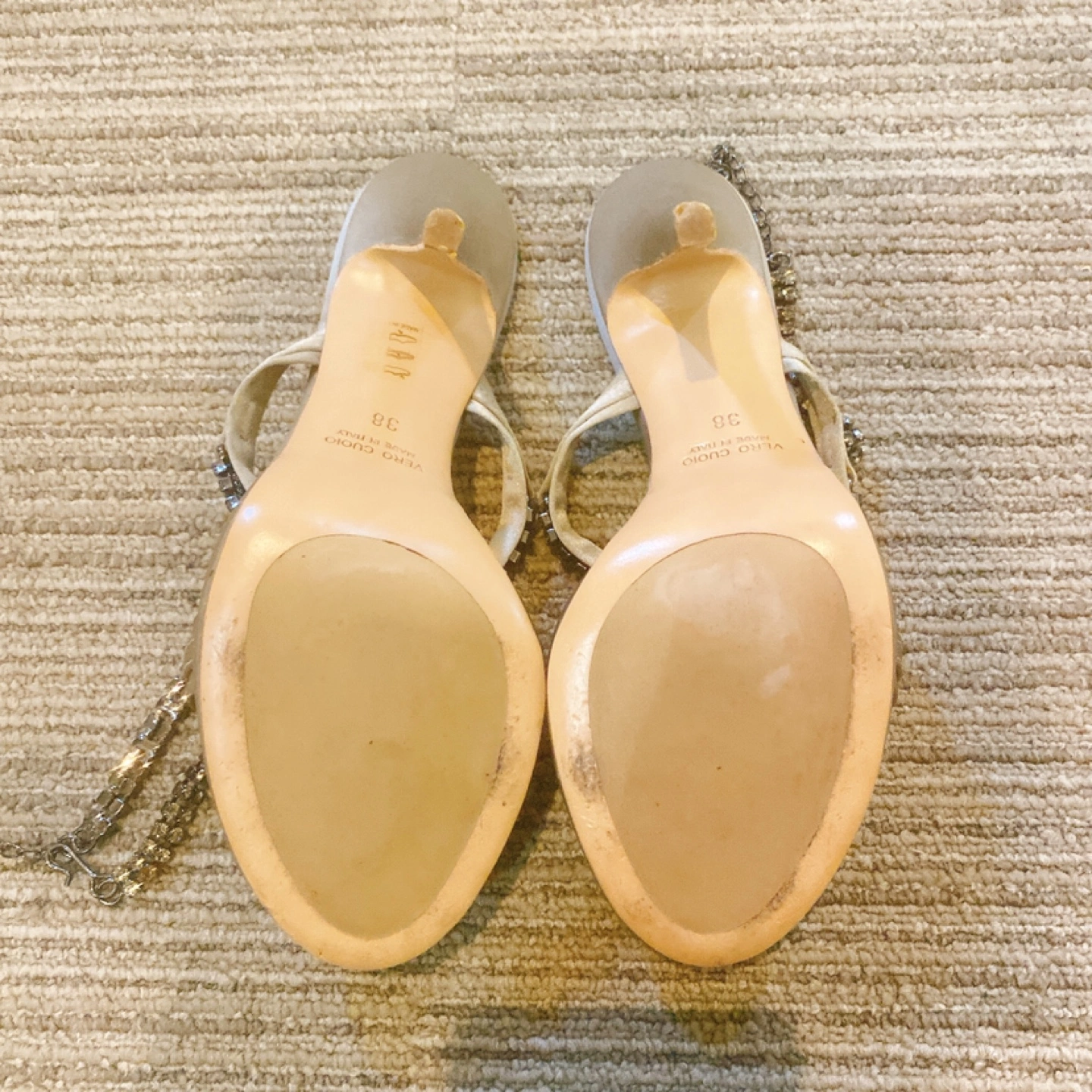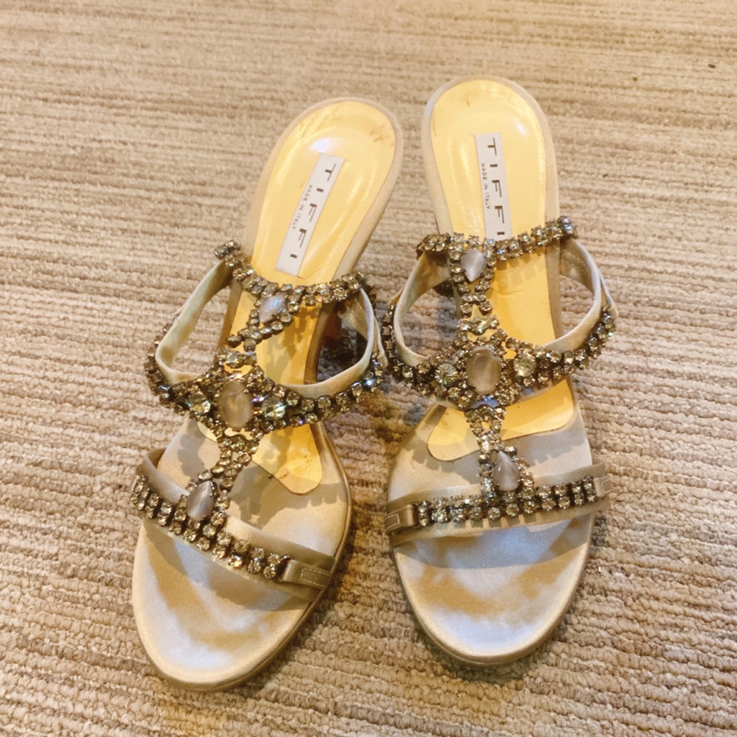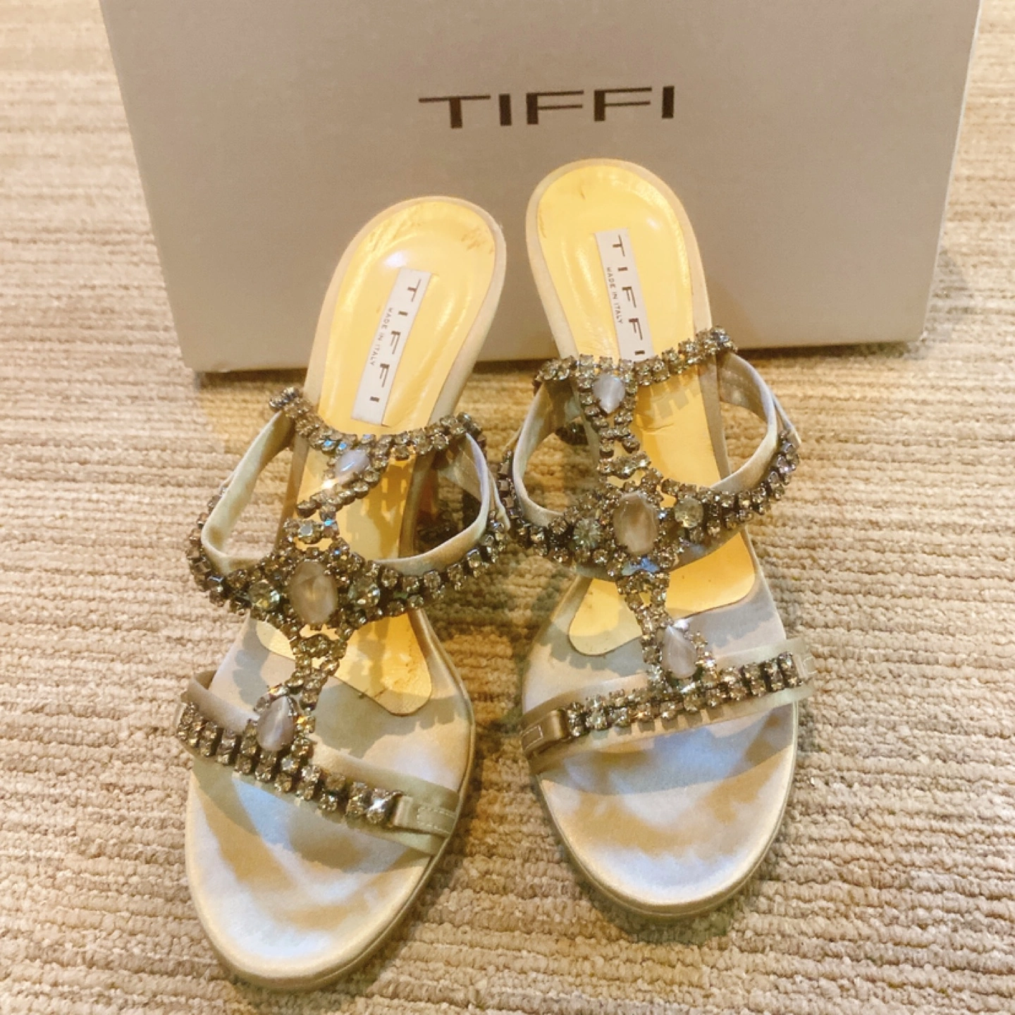 あたたかさビジュー装飾が華やかなイタリア製のTIFFIのシルバーサンダル。 足首にチェーンを巻くタイプになっております。 5万円くらいで購入しましたが、履く機会があまりないのでどなたか履いていただける方に。 サイズ38 - ブランド: TIFFI - 色: シルバー - 装飾: ビジュー付き - スタイル: サンダル - ヒールの高さ: 中ヒール 個人保管なので、 神経質な方はご確認の上、お願い致します☺︎ タバコは吸いません