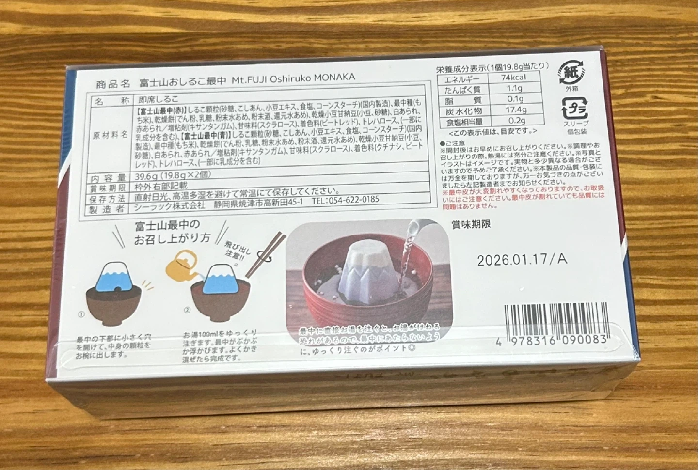 フジヤマの最中です 【情報】 ブランド:フジヤマ 商品名:富士山おしるこ最中 Mt.FUJI Oshiruko MONAKA 内容量:39.6g(19.8g×2個) 賞味期限:2026.01.17 富士山 おしるこ 最中 2個 Mt.FUJI Oshiruko MONAKA お土産にも良いかと思います 受け渡しは京王線沿線希望ですが、仕事の日程によって別路線を利用することがあるので、日程によっては中央線や他の路線なども可能なこともあるのでコメントからご相談下さい