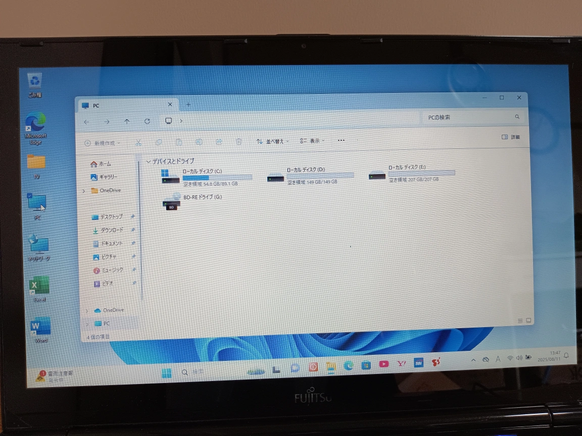 富士通 ノートパソコンです 【情報】 ブランド:フジツウ OS: Windows 11 Pro CPU: Intel(R) Core(TM) i5-3230M CPU @ 2.60GHz 2.60 GHz メモリ 16GB SSD 480GB 附属品 ACアダプター 【状態】 使用感はありますが、目立つ傷はありません。 光学ドライブCD・DVD・読み取り書き込む可能です 。 パソコンの状態中古なので多少汚れや傷などありますが動作には問題ありません。しかし新品同様のクオリティを求める方は新品をしたほうがいいと思います。 ご覧いただきありがとうございました。 中古品であることご了承ください
