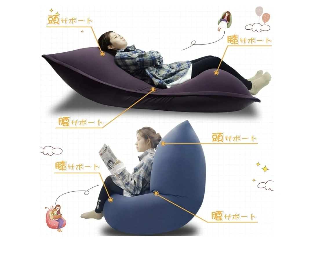 【RAKU】ビーズクッション ビーズソファー 長方形型 特大サイズ 135x75cm 体にフィットするソファ 洗えるソファカバー付き 極小ビーズ もちもち 寝れるビーズクッション 人をダメにする ビーズ 座布団 ソファーカバー 無地 コットン びーずくっしょん ビーズ補充可能 リッラクスアイテム 2人掛け (パープル(L)) ビーズクッションソファー中古です。 思ってたより大きく出して使う時があまり無かったので何回かしか使用してません😅 お色はパープルです。写真2枚目がリアルな色です。 4.5キロありますのでお車で取りに来られる事を推奨します。 足立区千住緑町の指定の場所まで引取りに来て頂ける方にお譲りします。 中古ですので半額以下にしてあります。