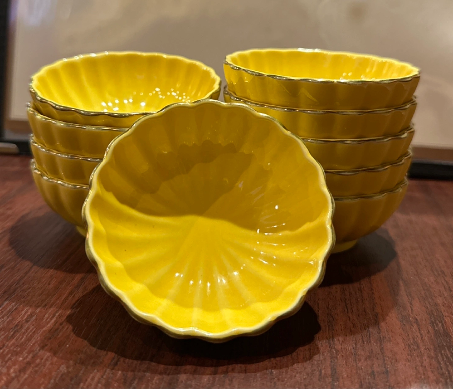 あたたかさ・イエロー ・直径約8cm ・ふち金色 一個 ¥300 一個の値段ですので、間違いないようお願い致します。 全部で10個あります。