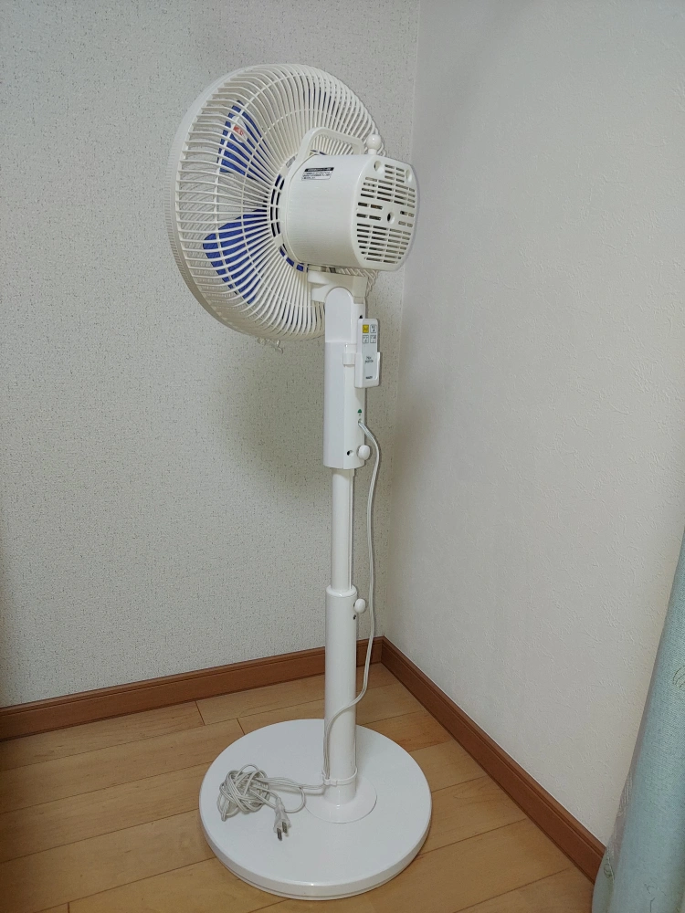ごくごく一般的な扇風機です。 去年夏まで使っていて、中古ですが、動作確認済みでまだまだ使っていただけると思います。 分解して羽など洗ってあります。 一番低くすると上から下まで95cm程度 首をのばして一番高くすると110cm程度です タイマー付き リモコン付き リズム風 首振り 風量切り替え ホワイト 取説あり 保証期限は切れてます 組み立て簡単です。 お引き渡しの際、ばらしておいた方が良いか、組み立てておいた方が良いか、指定していただければそのように致します☆ どうぞ宜しくお願いいたします。