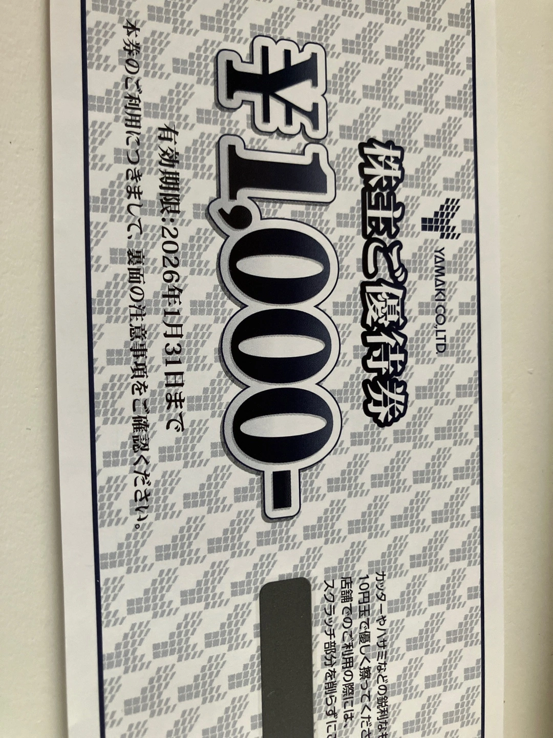 ・山喜株式会社 株主ご優待券 ・1000円券 ・有効期限:2026年1月31日まで