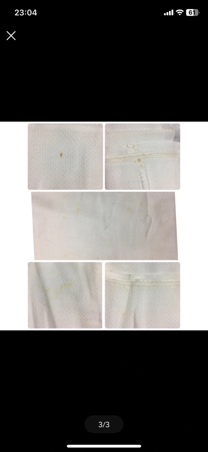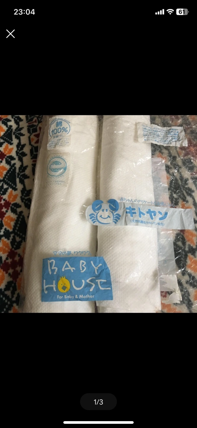 輪型の仕立て上りおむつです。 8枚あります。 片付けをしていたら出てきました。 新品未使用品ですが、経年による黄ばみの様なシミ汚れがあります。特に端に見られます。 8枚全てにおいて写真の様なシミがあります。 気にされない方いらっしゃいましたら、ご検討ください。 自宅保管ですので神経質な方のご購入をお断りしております。 ※トラブル等を防ぐため気になる事がございましたら、ご質問お待ちしております。 経堂〜豪徳寺駅 周辺でのお取引を希望いたします。