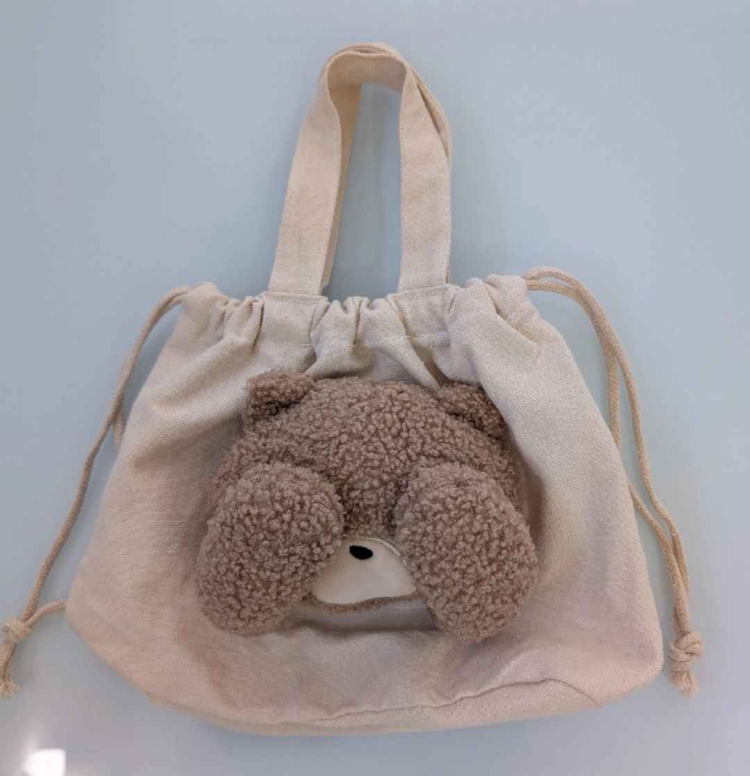 ご覧頂きありがとうございます☘️ クマがついた🧸バッグになります🤍 2、3回使用致しました。 全体的には綺麗ですが、内側に黒い汚れがあります。 また、元々購入時赤い点のようなものが製品についてました。 (5、6枚目ご参照ください) お気になさらない方にお譲り致します🌟 宜しくお願い致します☺️