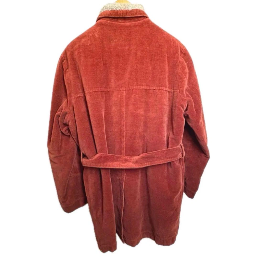 【サイズ】 L 肩幅 46cm 身幅 56cm 袖丈 61cm 着丈 81cm 【カラー】 ブラウン 赤〜オレンジ系 【素材】 表地 綿 裏地 アクリル 【詳細】 McGREGOR(マックレガー) 裏ボア ランチジャケット ランチコート 数十年前にニューヨークで購入し、着用していたものです。近年は大切にクローゼットに保管しておりました。 暖かいボアライナーが暖かく、ボタンやデザインに温かみを感じるレトロな一着◎ ウエストマークでカジュアルになりすぎないスタイルを演出してくれます。 人と被らないデザインをお探しの方におすすめです。 - 1921年 にニューヨークで誕生したMcGREGOR(マックレガー)の公式サイト。上質でクリーンなアメリカンカジュアルを提案します。 【状態】 大切に保管しておりましたが、数十年前のものですので、シミ汚れやバックルの劣化など、使用感がございます。 古着としての風合いとしてお楽しみいただけたら嬉しいです。使うのに支障をきたすような大きな壊れはございません。 used&自宅保管のため、神経質な方はご遠慮下さい。トラブルを防ぐため、購入前に気になる点はコメント下さい。 【その他】 実家整理のため、出品いたします。 突然商品を削除する可能性がありますので、気になりましたらお気軽にコメント下さいませ。 コーデュロイジャケット 70年代 80年代 80s インポート ヴィンテージ ビンテージ アウター メンズ Lサイズ アメカジ 古着 古着mix ジャンパー ジャンパー 上着 coat コート 朱色 ムートンコート ランチコート Lee