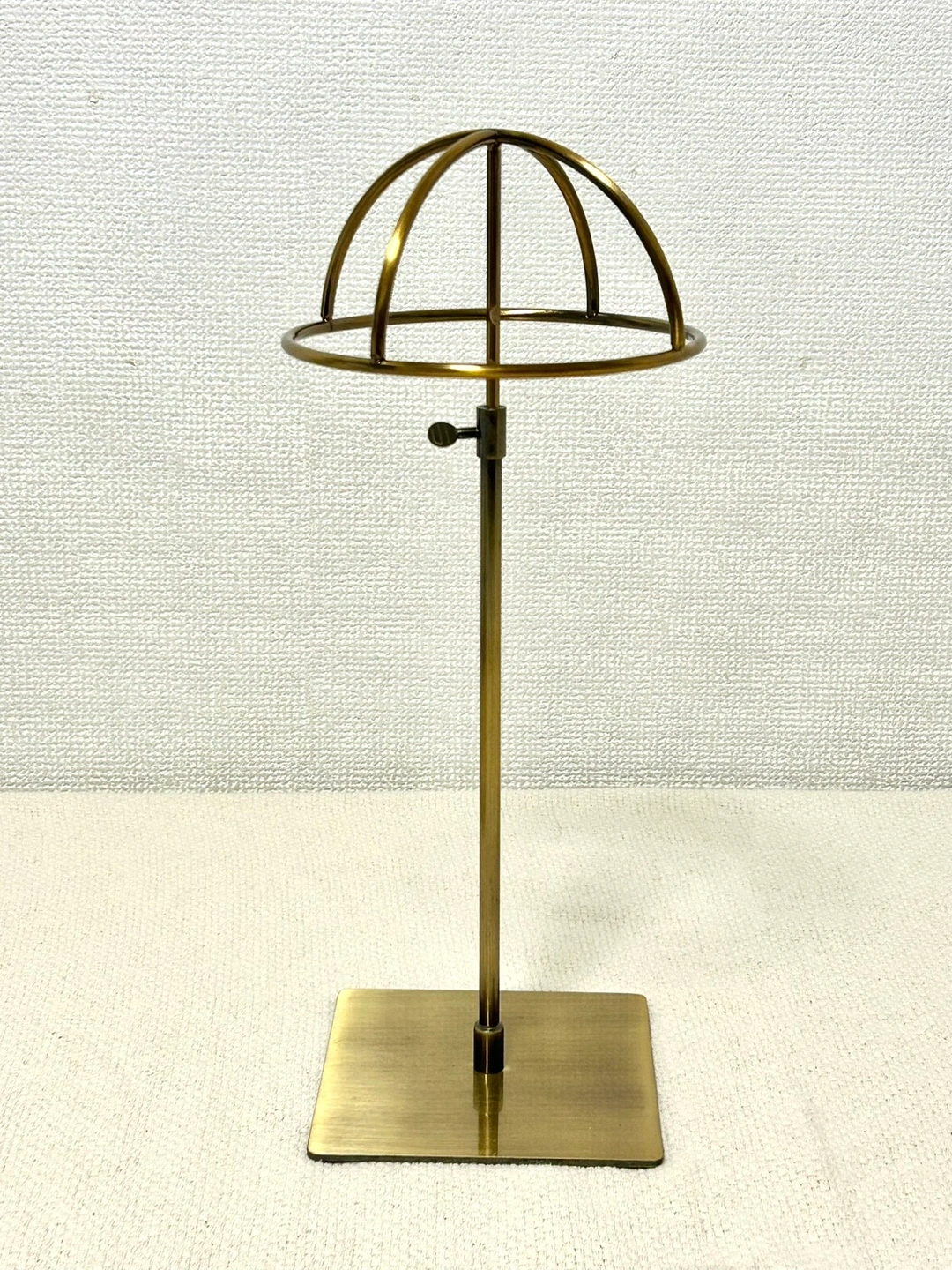 シックな真鍮色の帽子掛けです。 高さ調節可能。 店舗でも使われているしっかりした商品です 短期間ですが使用済みです。 多少使用感や小さな傷汚れありますが、 使用には問題ないと思います。 購入時価格:¥3000~¥4000くらい 【サイズ】 サイズ:W15×D15×H35.5~56cm ベース:13×13cm ヘッド:直径15cm 色:アンティークゴールドメッキ 材質 :スチール製 #店舗什器 #ディスプレイ用品 #帽子