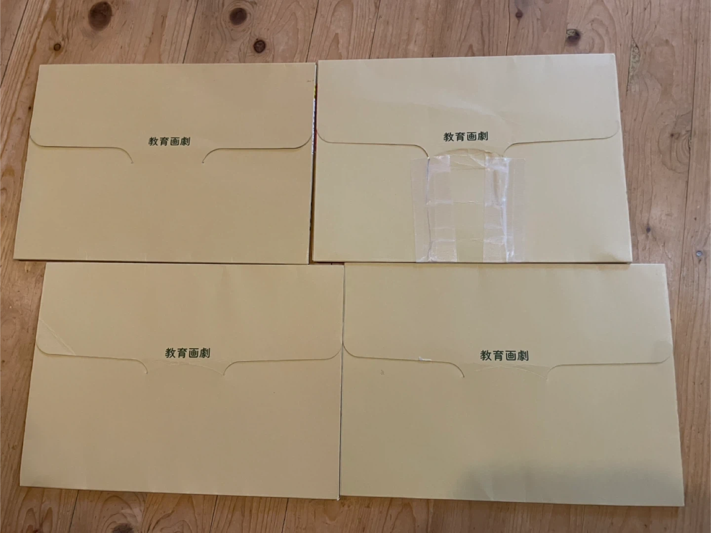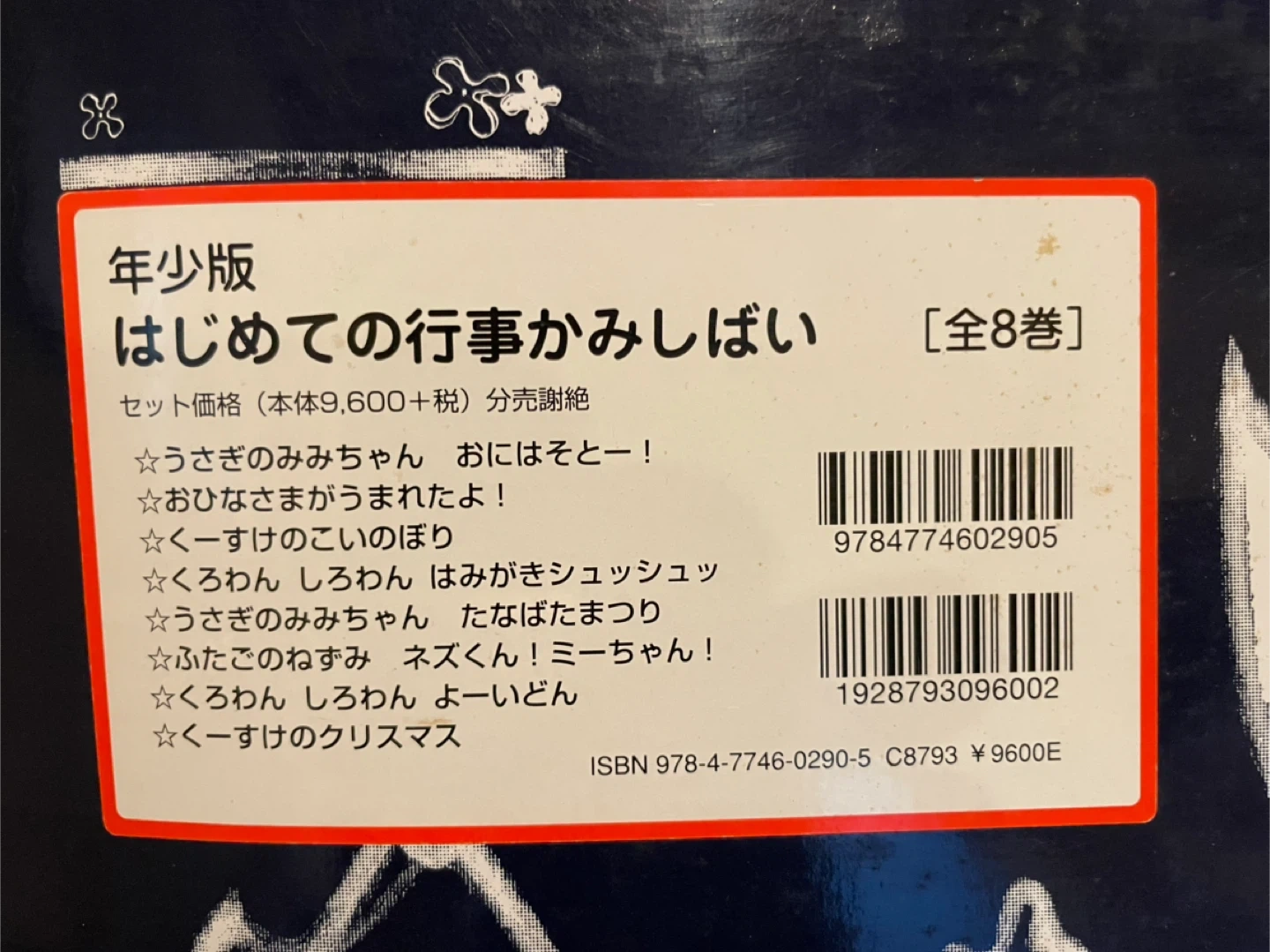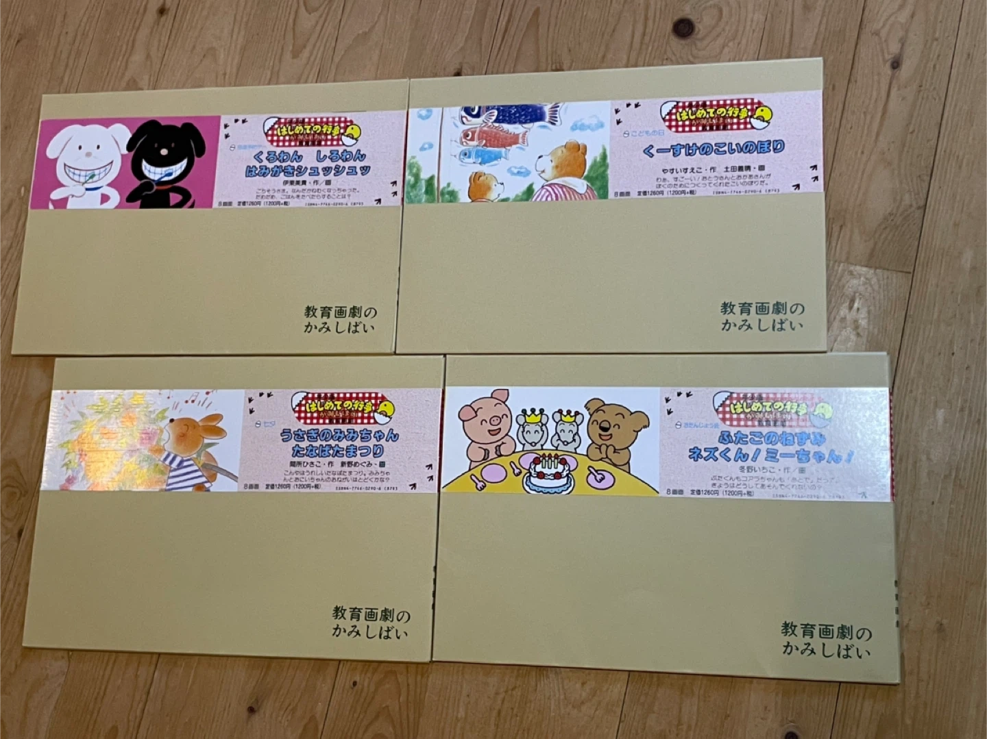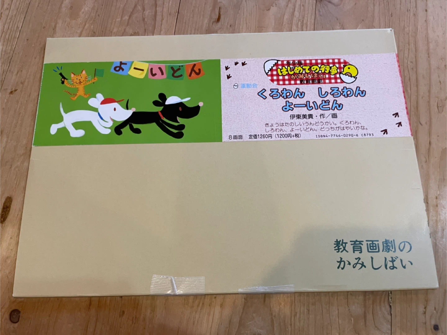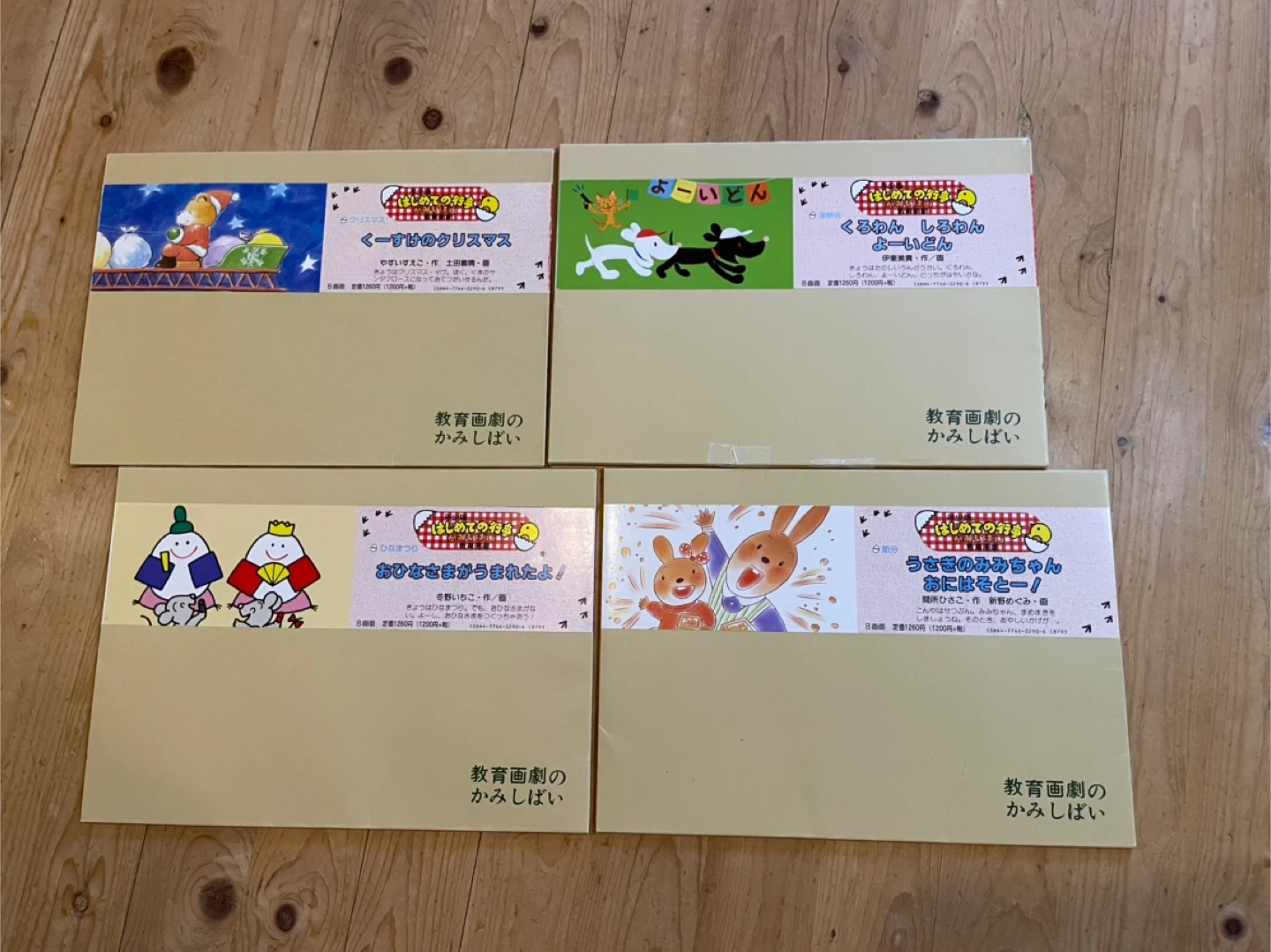 年少版 はじめての行事かみしばい 《全8巻》 税抜9600円 6枚目の運動会絵本のケース及び 8枚目の全体用のケースにテープ補修有ります。 中身に折れやにじみ等は有りません。 あくまで中古品です。 ご理解ください。
