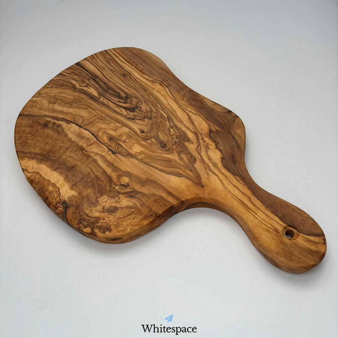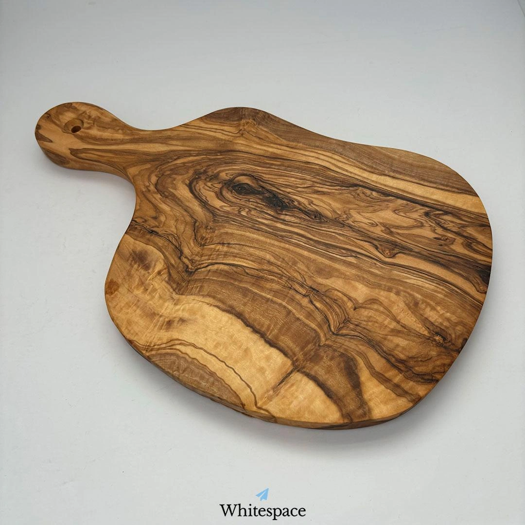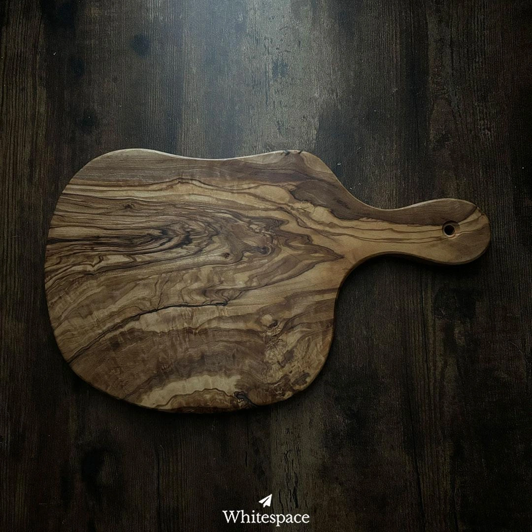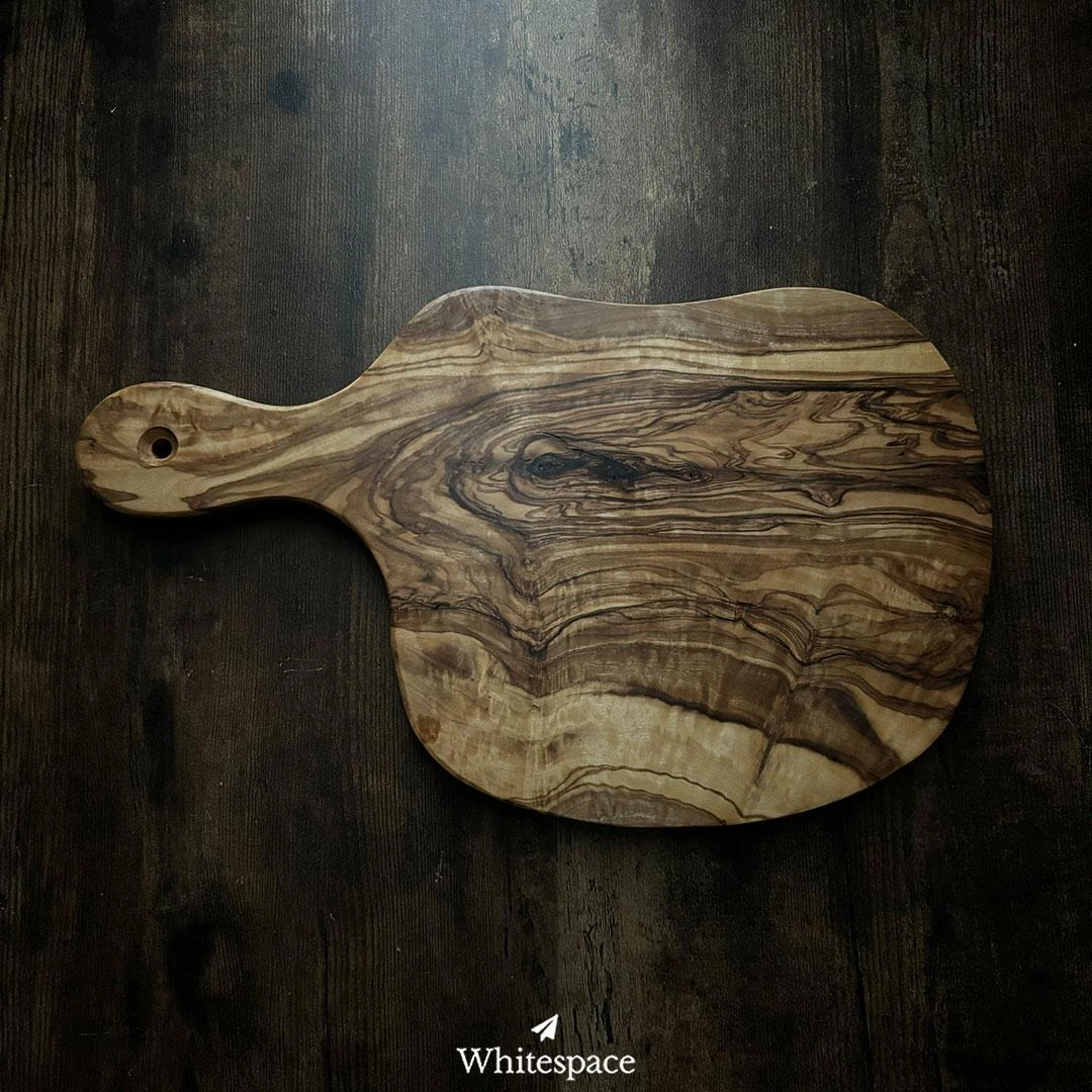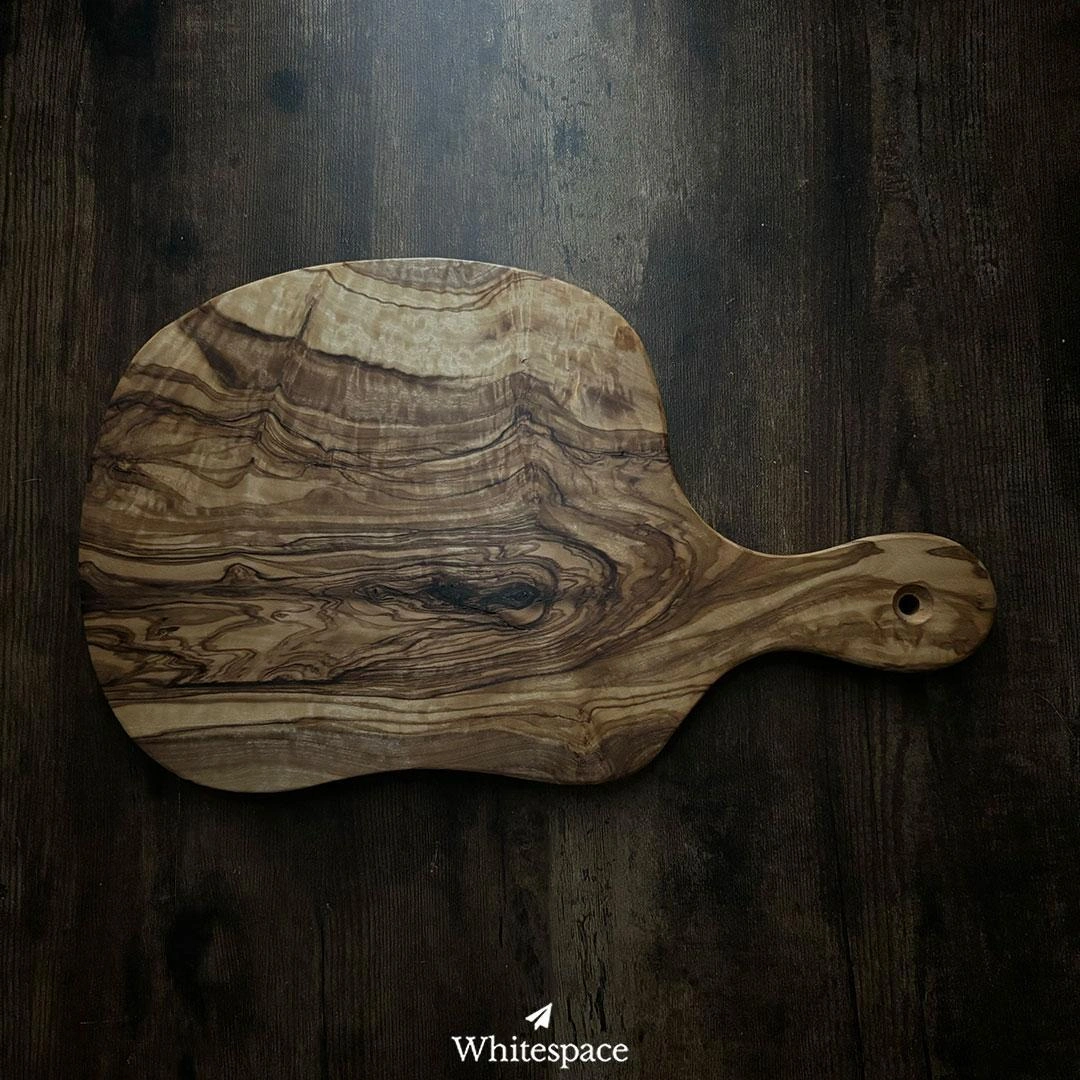 既存の概念にとらわれない、ユニークな形をしたカッティングボードです。自然が描いた木目模様の中に、幸せを呼ぶ妖精達が潜んでいます。オリーブの木は古くから幸せを呼ぶといわれています。そして、オリーブの花言葉は「平和」です。 樹齢の数百年、周囲の人々や動植物達に果実やオイル等の恩恵を与え続けてきたオリーブの古木がその役目を終えた今、熟練職人の手仕事によってまな板として生まれ変わりました。だから、使い込まなくても新品状態から味があります。もちろん使い込むほどに、質感の深みが増していきます。 オリーブ木は衝撃に強く耐久性が高いので、食器や調理用具に広く使われています。天然木材の持つ風合いと手触り、一つとして同じ木目や色が存在しない、レアな存在感をゲットしましょう! パーティーでは、ココットに盛り付けたお菓子やオードブルを乗せてそのままテーブルに。今宵はドライソーセージをジャックナイフで削ぎ切りながら、ワイルドな雰囲気を醸し出しつつ、ウィスキーやブランデーを愉しむ。オリーブ木製のカッティングボードが、おうちパーティ、おうちバーをあたたかく演出します。お料理写真でインスタ映えを狙うなら、超個性的な小物アイテムとしても活躍することでしょう。 天然木という材質上、一点一点、異なる木目や節があり、色も各々違います。また、細かい傷や荒削り感、いびつ感、オリーブ木材独特の芳香、表面の凹凸による少しのガタつきなどがあります。これらは不良品扱いとはなりませんので、予めご理解の上お買い求めください。 一点一点手作りのため、サイズも各々異なります。 サイズ/全長: 約340mm、全幅: 約194mm、厚さ: 約19mm、質量: 約842グラム 生産国: チュニジア ※写真はイメージです。写っているまな板以外の物は付属しません。 ※閲覧されている環境により、若干色味が違って見える場合がございます。 #カッティングボード #サービングボード #オリーブ #オリーブウッド #オリーブの木 #オリーブ木 #まな板 #プレゼント #ボタニカル #エシカル #プラスチックフリー #SDGs #ホワイトスペース #Whitespace 素材…オリーブ木 ご希望の方はお気軽にご連絡ください。
