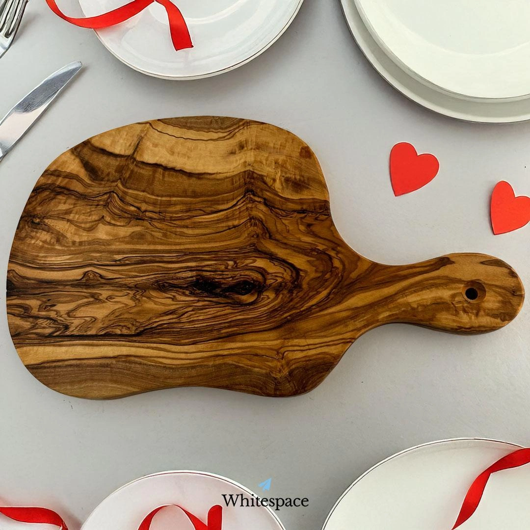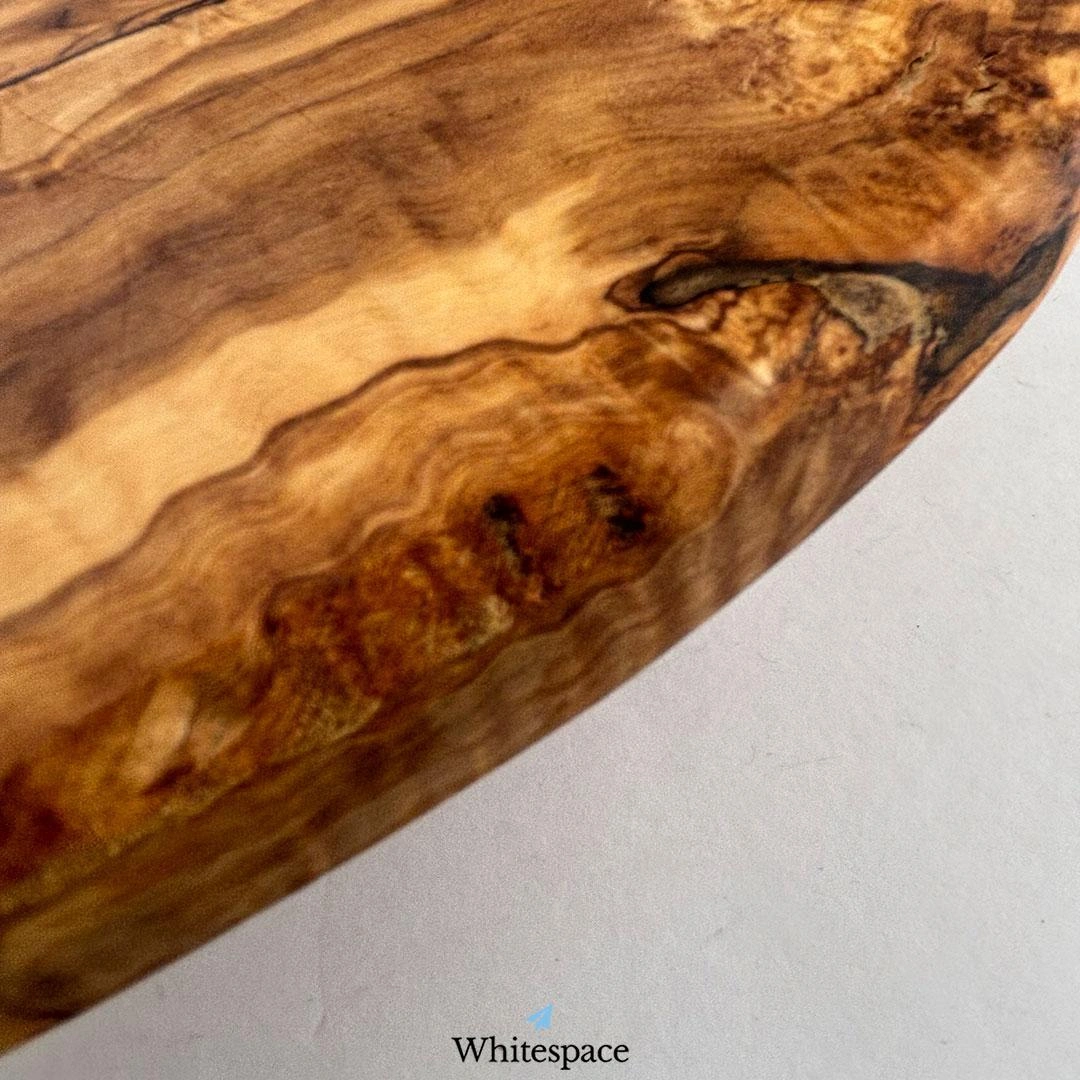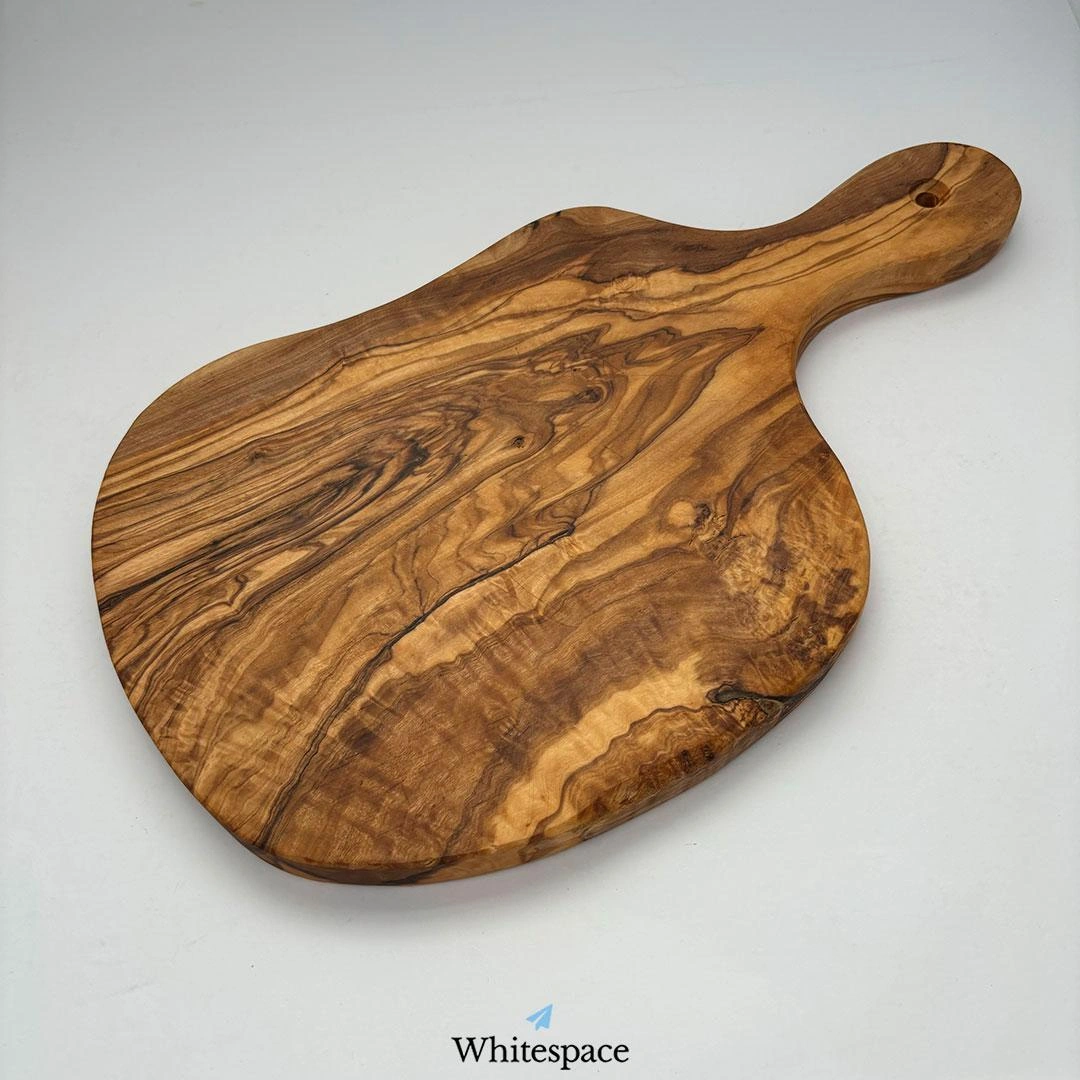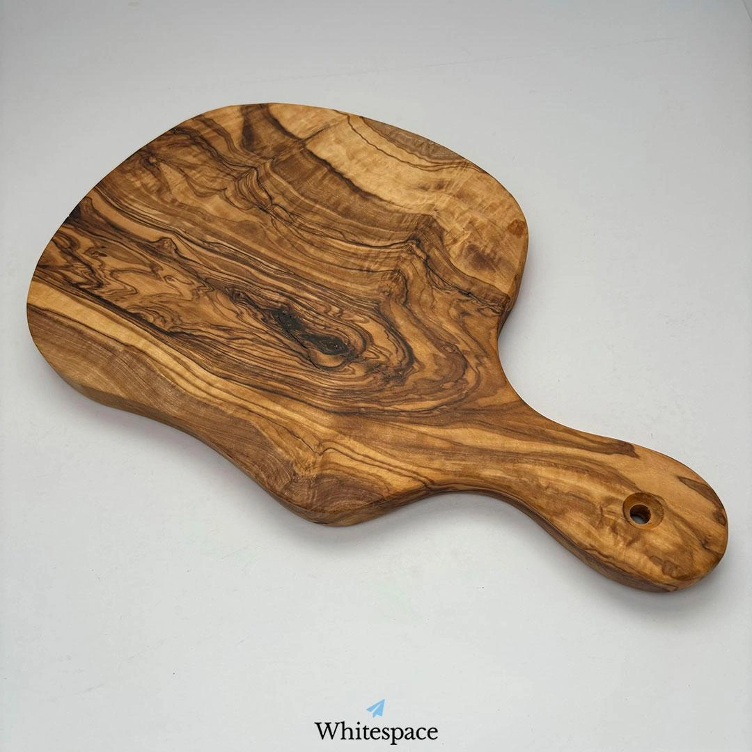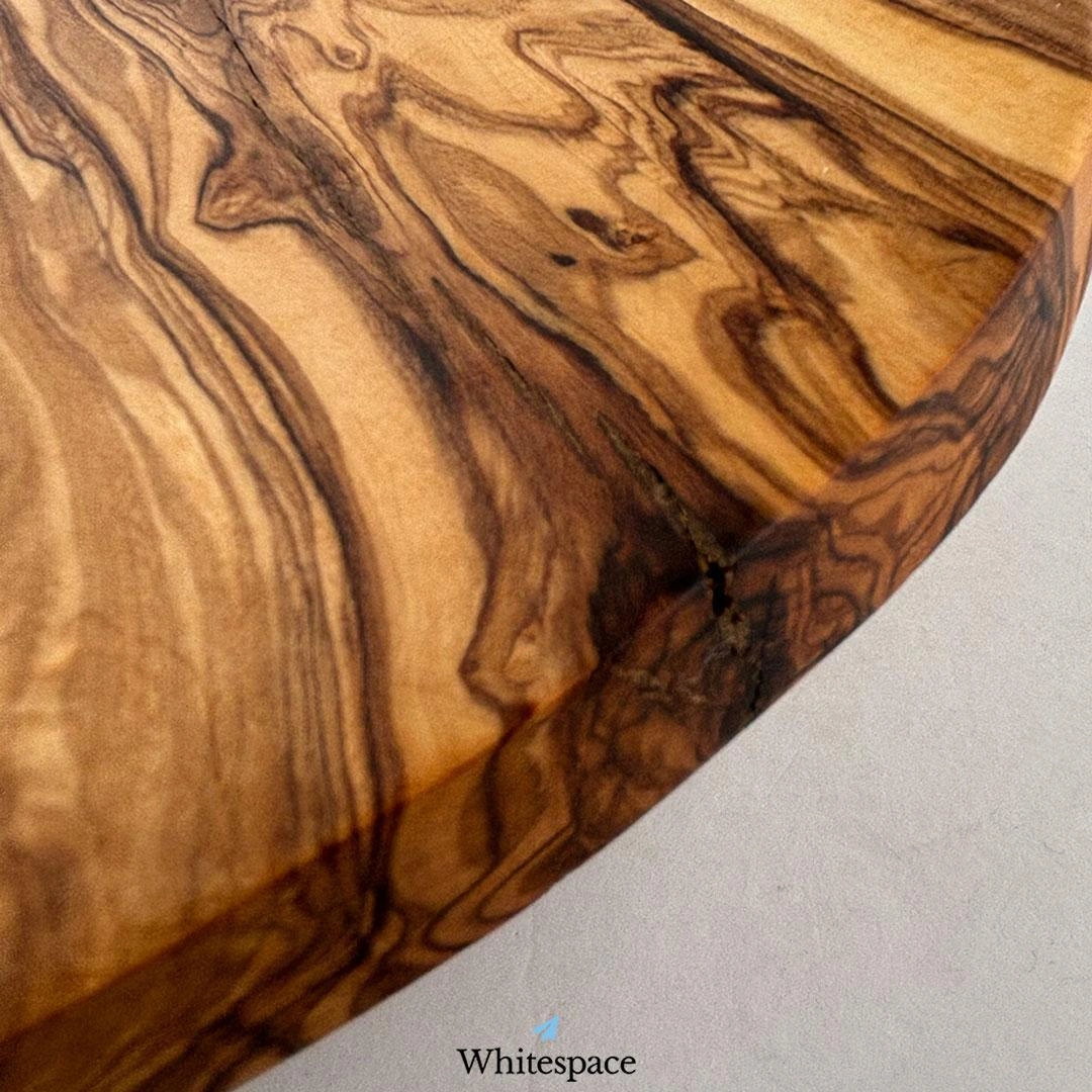 既存の概念にとらわれない、ユニークな形をしたカッティングボードです。自然が描いた木目模様の中に、幸せを呼ぶ妖精達が潜んでいます。オリーブの木は古くから幸せを呼ぶといわれています。そして、オリーブの花言葉は「平和」です。 樹齢の数百年、周囲の人々や動植物達に果実やオイル等の恩恵を与え続けてきたオリーブの古木がその役目を終えた今、熟練職人の手仕事によってまな板として生まれ変わりました。だから、使い込まなくても新品状態から味があります。もちろん使い込むほどに、質感の深みが増していきます。 オリーブ木は衝撃に強く耐久性が高いので、食器や調理用具に広く使われています。天然木材の持つ風合いと手触り、一つとして同じ木目や色が存在しない、レアな存在感をゲットしましょう! パーティーでは、ココットに盛り付けたお菓子やオードブルを乗せてそのままテーブルに。今宵はドライソーセージをジャックナイフで削ぎ切りながら、ワイルドな雰囲気を醸し出しつつ、ウィスキーやブランデーを愉しむ。オリーブ木製のカッティングボードが、おうちパーティ、おうちバーをあたたかく演出します。お料理写真でインスタ映えを狙うなら、超個性的な小物アイテムとしても活躍することでしょう。 天然木という材質上、一点一点、異なる木目や節があり、色も各々違います。また、細かい傷や荒削り感、いびつ感、オリーブ木材独特の芳香、表面の凹凸による少しのガタつきなどがあります。これらは不良品扱いとはなりませんので、予めご理解の上お買い求めください。 一点一点手作りのため、サイズも各々異なります。 サイズ/全長: 約340mm、全幅: 約194mm、厚さ: 約19mm、質量: 約842グラム 生産国: チュニジア ※写真はイメージです。写っているまな板以外の物は付属しません。 ※閲覧されている環境により、若干色味が違って見える場合がございます。 #カッティングボード #サービングボード #オリーブ #オリーブウッド #オリーブの木 #オリーブ木 #まな板 #プレゼント #ボタニカル #エシカル #プラスチックフリー #SDGs #ホワイトスペース #Whitespace 素材…オリーブ木 ご希望の方はお気軽にご連絡ください。
