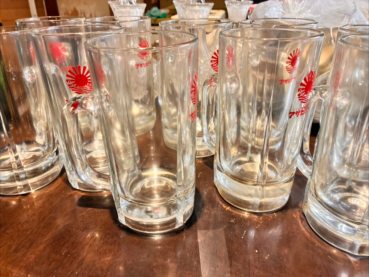 アサヒビールのロゴが入ったガラス製ジョッキです。 今は廃盤のデザインなので、とても貴重です。 昭和レトロがお好きな方、いかがでしょうか? 状態はかなり良好です! 未使用ですが、倉庫にて長期保管のためお渡しが決まりましたら 洗浄・消毒をしてからお渡しさせて頂きます。 複数ありますので、ご希望の数をお伝え下さい。 1つ300円ですが、何個かまとめてお取引の場合は多少ですがお値引させていただきます。 ・アサヒビールロゴ入りジョッキ ・高さ約16cm ・クリアグラス ・複数あるのでご希望の数をお伝えください。 こちらは中野区にある「東京工芸大学」付近でのお渡しになりますが、コチラの日時に合わせて頂ければ小平市大沼町付近で のお渡しも可能です。