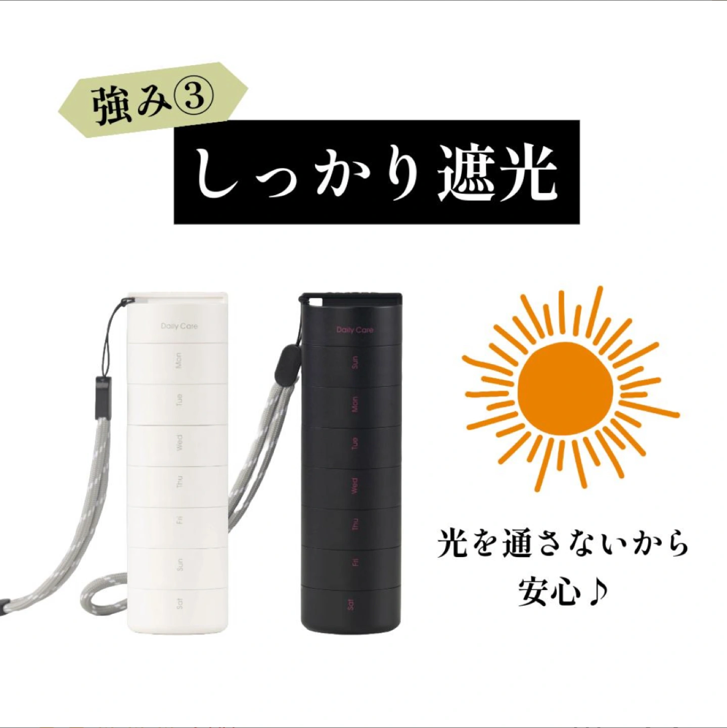 商品情報 サイズ底面4.5cm×4.5cm 高さ15cm カラー ホワイト 材質ABS樹脂 耐熱耐冷温度−20度〜80度 ※電子レンジ使用不可 ※冷蔵・冷凍庫使用可能 容量各容器15cc(満タン水量) 製造国台湾 キーワードピルケース 1週間 携帯用 持ち運び 筒状 白 黒 防湿 防水 コンパクト 旅行グッズ 出張グッズ ソロキャンプ DHA EPA ビタミン サプリケース