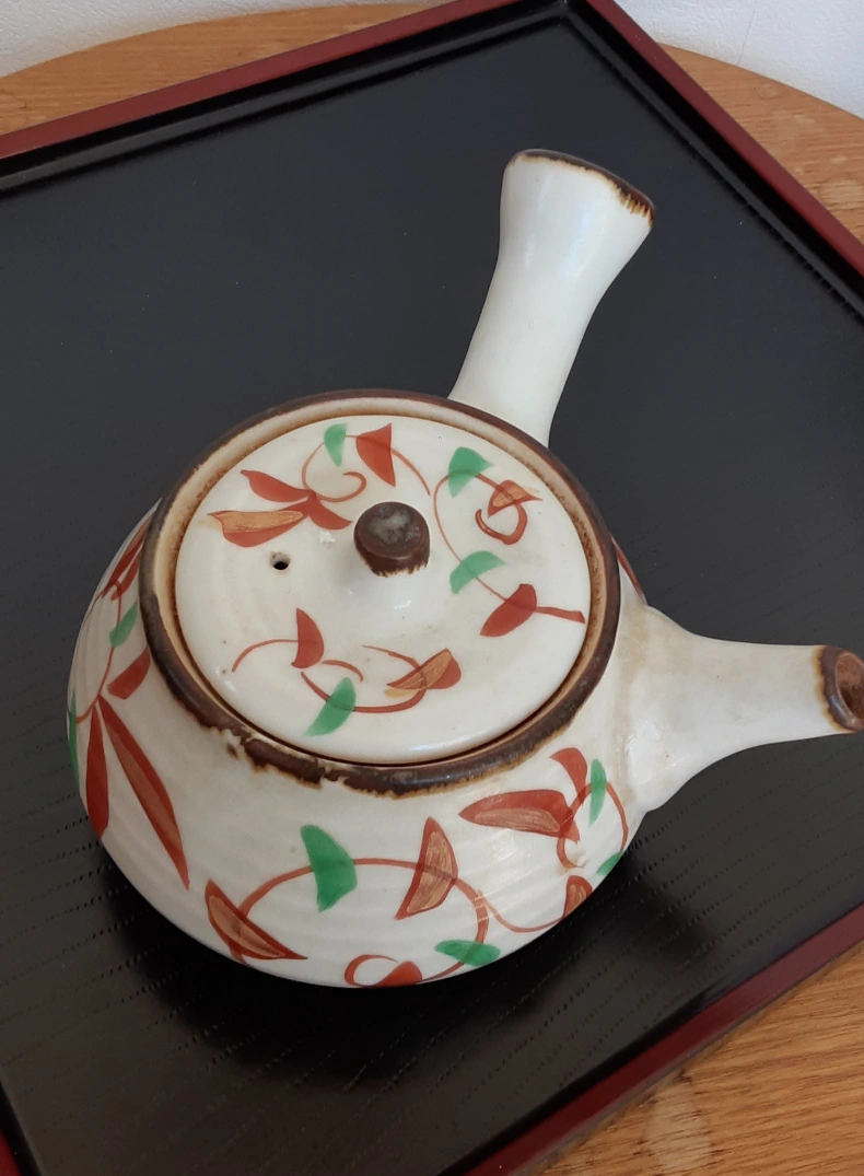 大きさは、正確には計り難いのですが、口や握りを除く径が、約11~12cm 手の平に載る小ささです。 磁器の冷たさが無い、陶器の暖か味があります。 実物をよくご覧になって納得されたらお願いします。無理強いはしません。バス23系「萱場公園入口」近ですません。