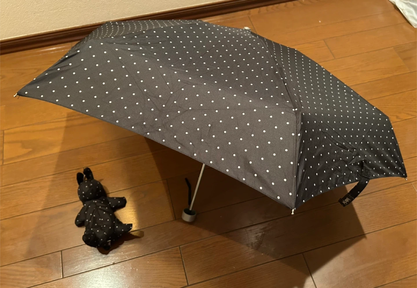 ドット柄の折りたたみ傘です ・色:ブラック ・ドット柄 ・収納袋付き(うさぎの形) ・使用感少なめ ・カバン等につけられるフック付き ご不明点があればお気軽にご連絡ください 自宅保管の中古品のある旨ご了承いただき ご検討よろしくお願い申し上げます。
